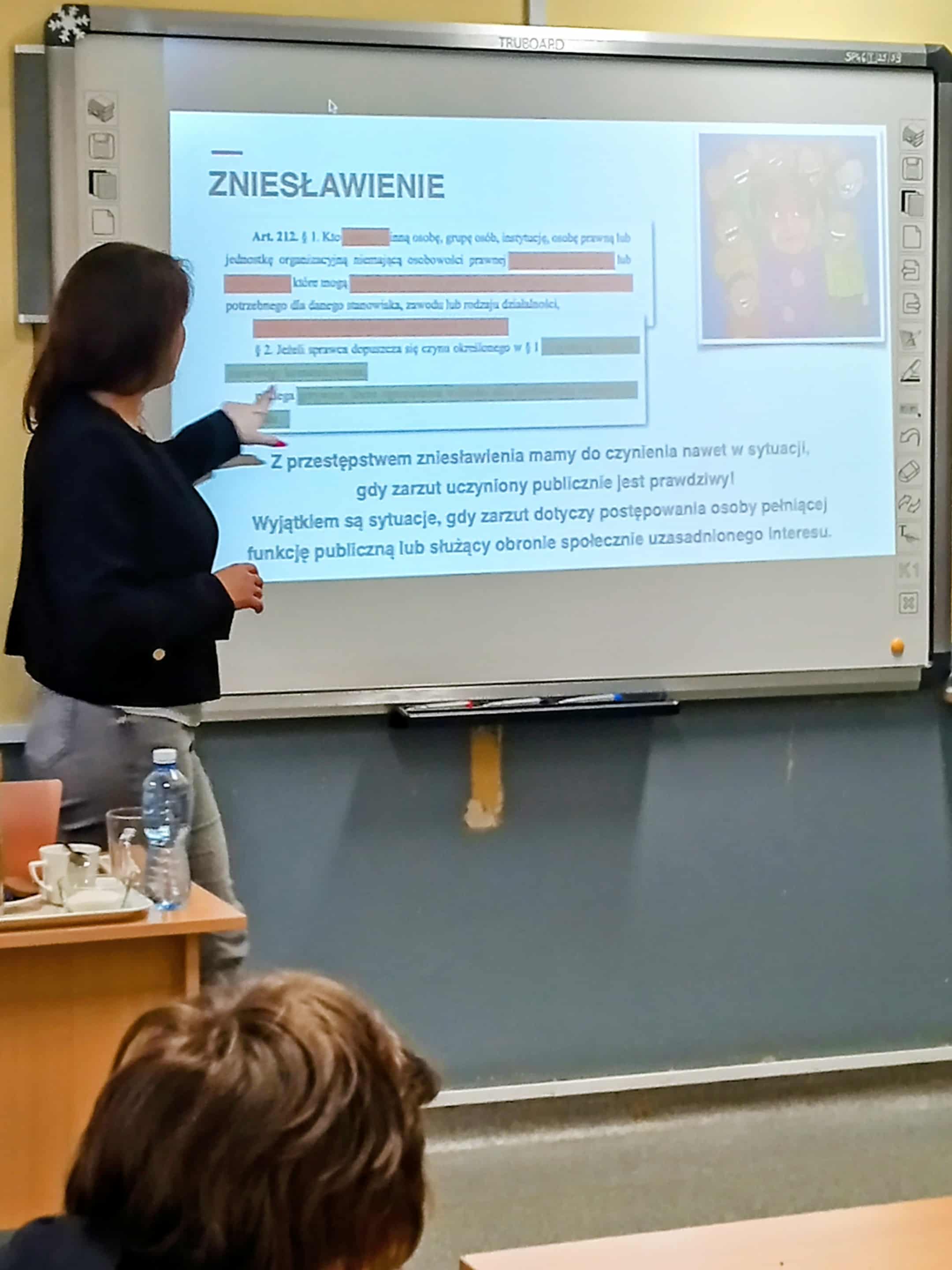 W ramach programu „Adwokaci rozjaśniają prawo” mieliśmy przyjemność gościć adwokat Aleksandrę Turską - Sitarek, która odwiedziła nas na zaproszenie Pani Hanny Lewandowskiej. Podczas spotkania uczniowie dowiedzieli się, czym jest hejt, jak rozpoznać jego przejawy oraz jakie konsekwencje prawne mogą grozić osobom dopuszczającym się przemocy słownej w Internecie i poza nim.