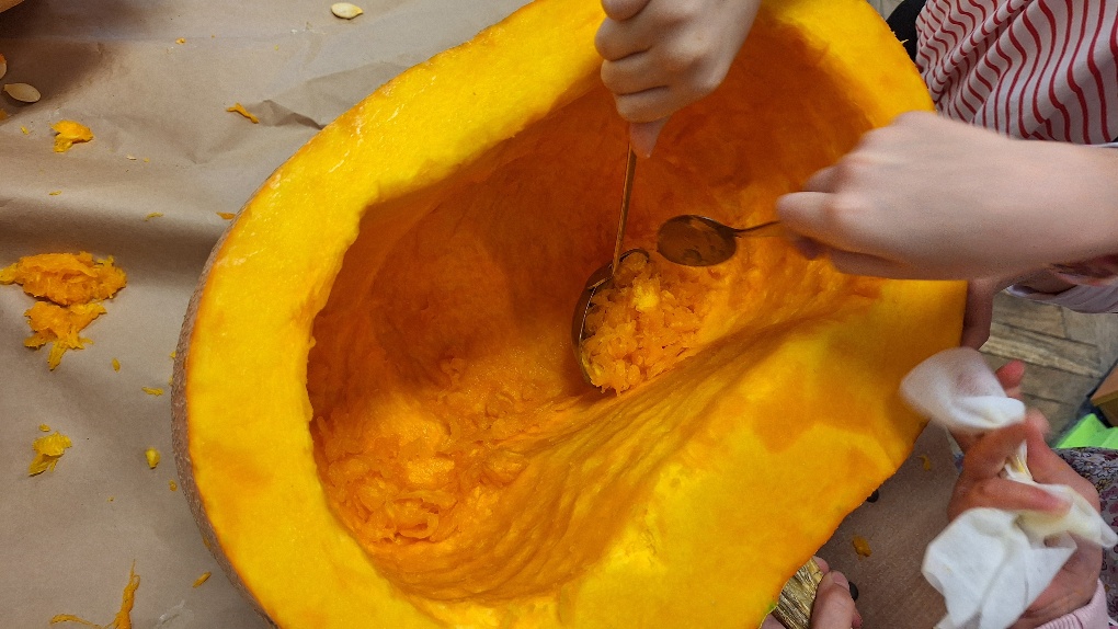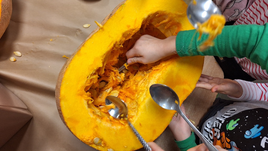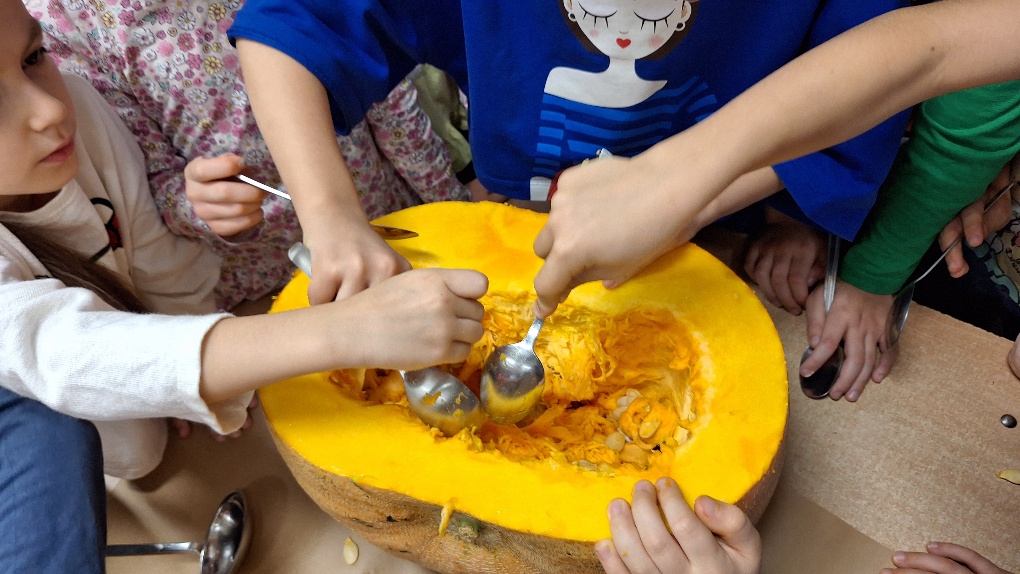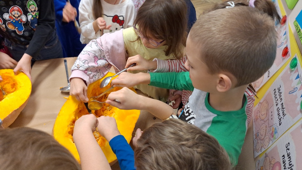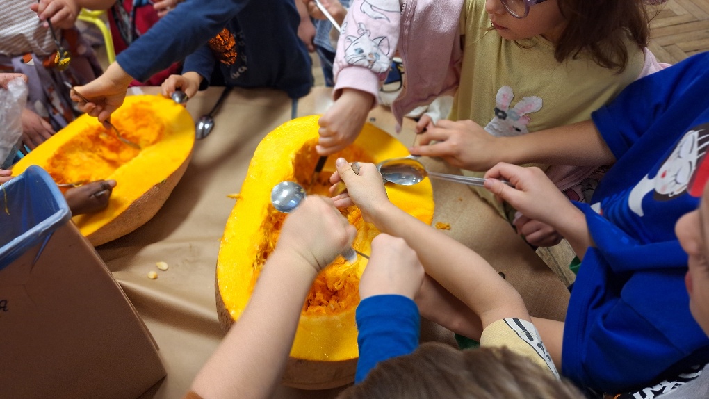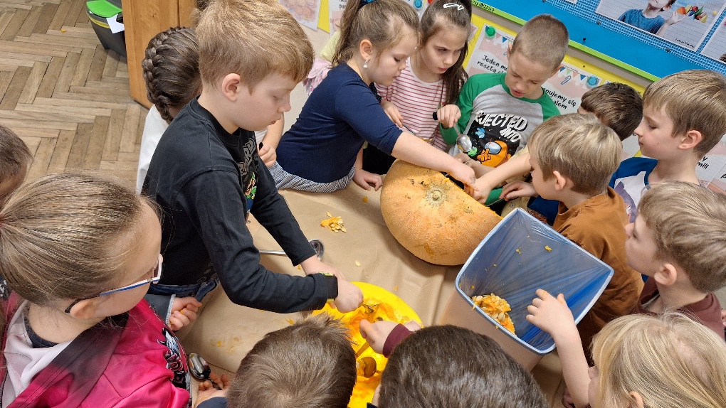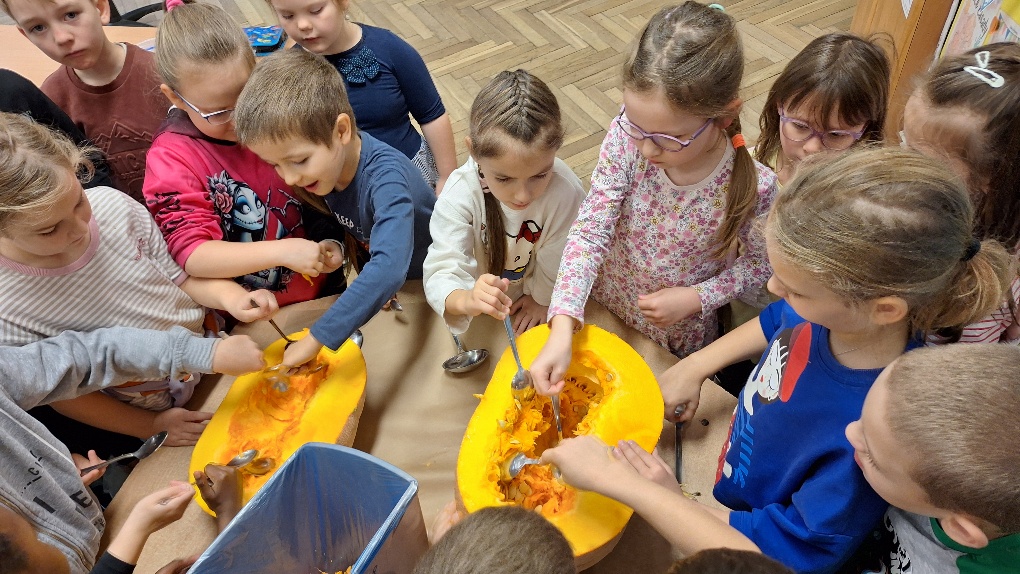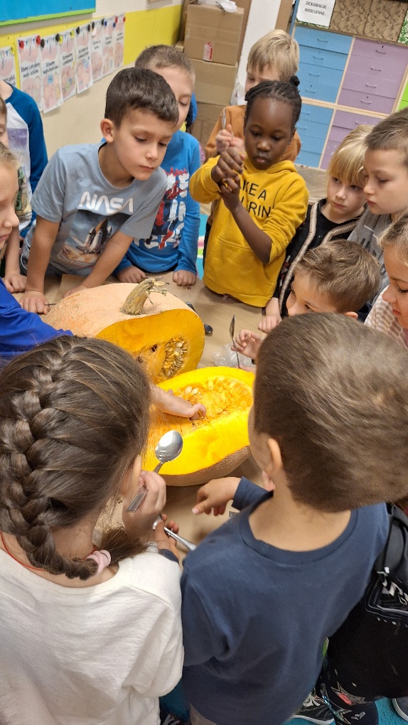 W początkowej fazie co prawda niektórych odrzucił wydobywający się ze środka dyni zapach, a po całkowitym jej rozkrojeniu, dzieci wąchały zarówno skórkę, jak i sam miąższ i ziarna. Byli i tacy, którzy zachodzili w głowę, usiłując znaleźć odpowiedź na pytanie: "Jak w ogóle można coś takiego jeść?" Szybko jednak, podając różne życiowe przykłady, pierwszoklasiści zorientowali się, że przecież kupione w sklepie surowe mięso też nieciekawie pachnie, ale już odpowiednio przyrządzone przez rodziców może stać się pysznym daniem.