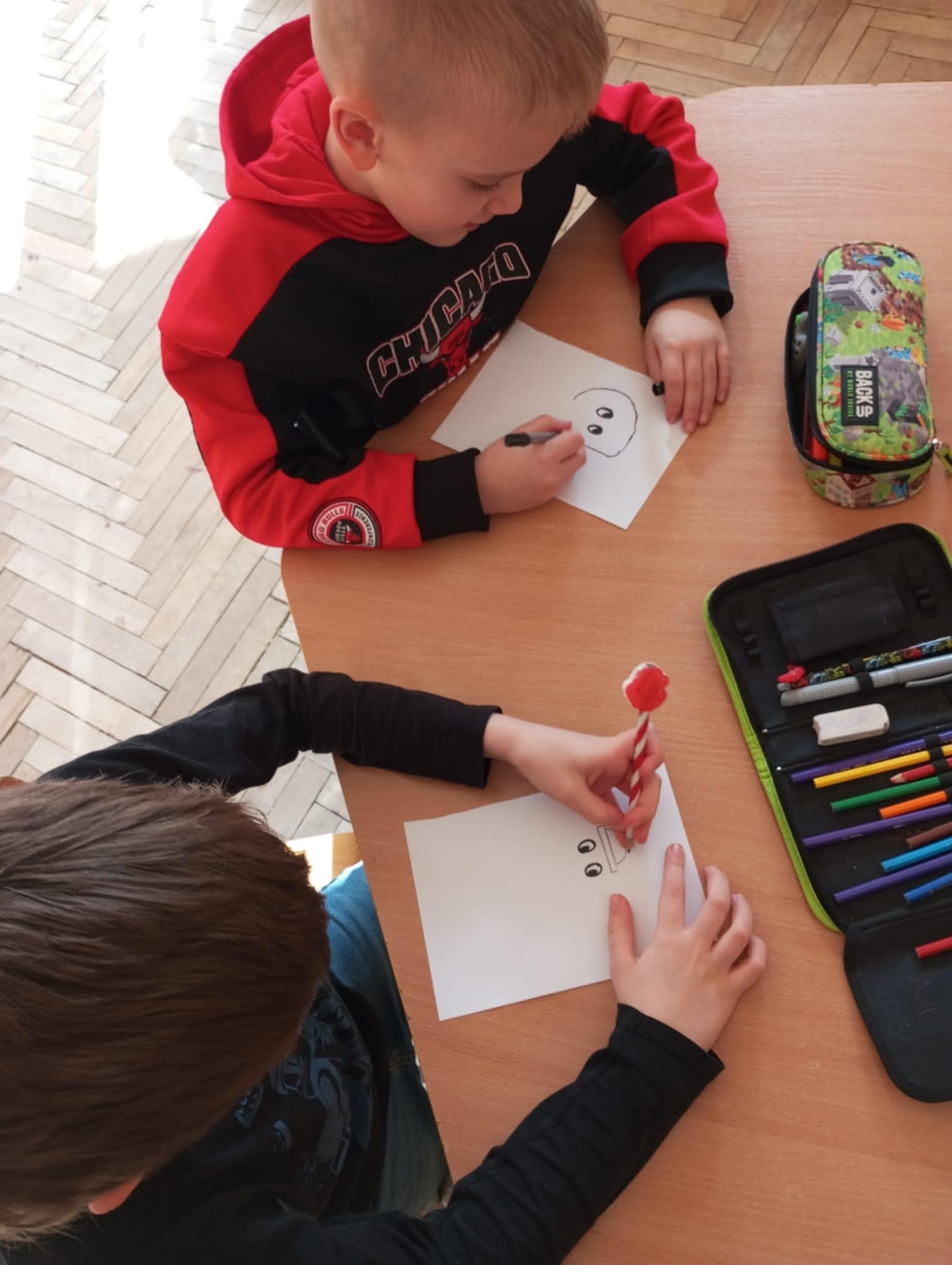 I tym razem miała miejsce zabawa, w której jedna osoba rysuje oczy, a druga dorysowuje resztę. To kreatywna gra rysunkowa, która często funkcjonuje pod nazwą "Dorysuj resztę” – najprostsza nazwa opisująca zasady.