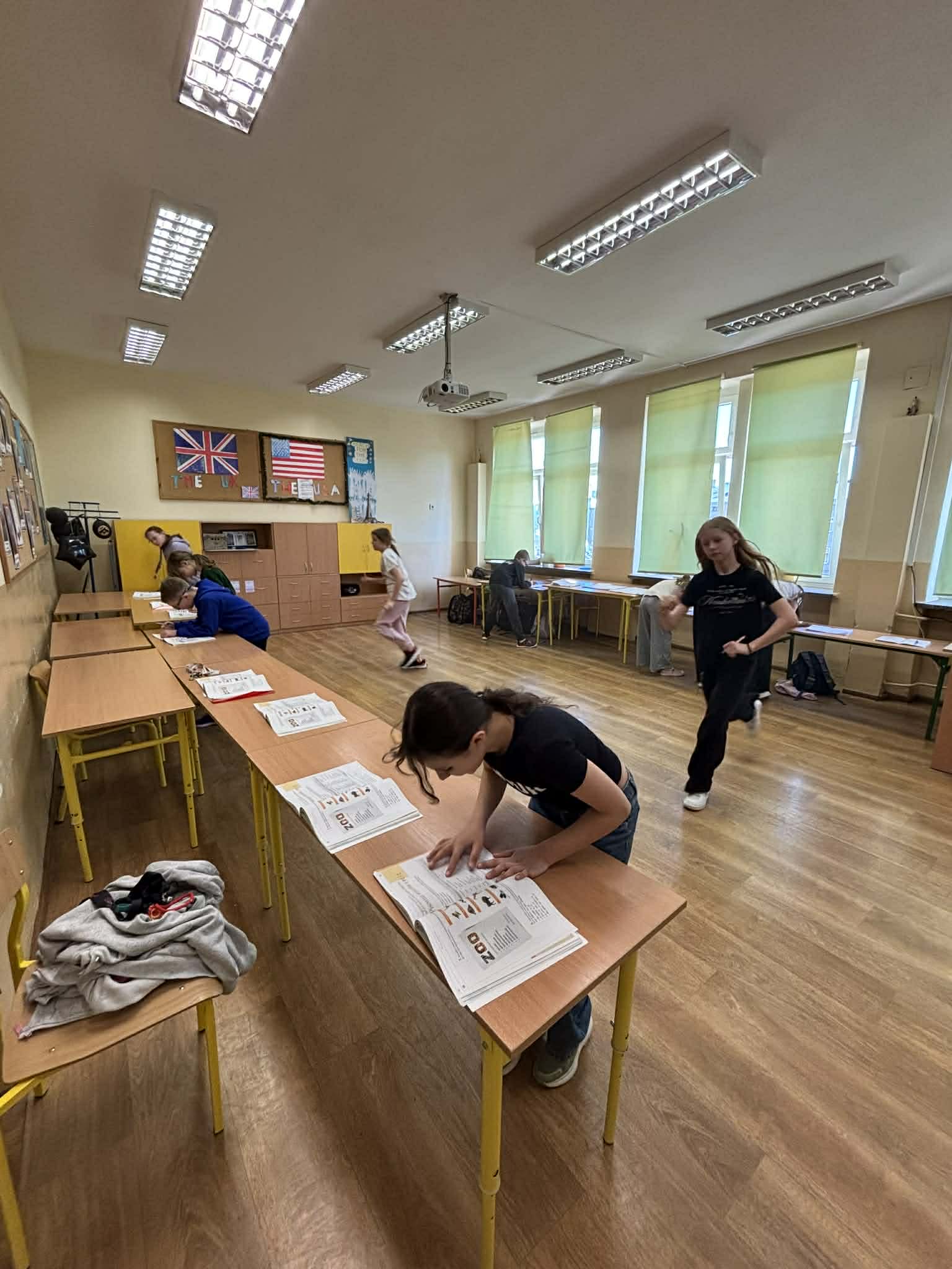 Jeśli na języku polskim musi pojawić się dyktando, to wyłącznie w wersji „bieganej”. Dyktando w biegu to kreatywna metoda nauki ortografii łącząca ruch z pisaniem. Uczniowie klasy 4a mieli za zadanie jak najszybciej i przede wszystkim bezbłędnie przepisać tekst umieszczony w odległości od ich zeszytów.