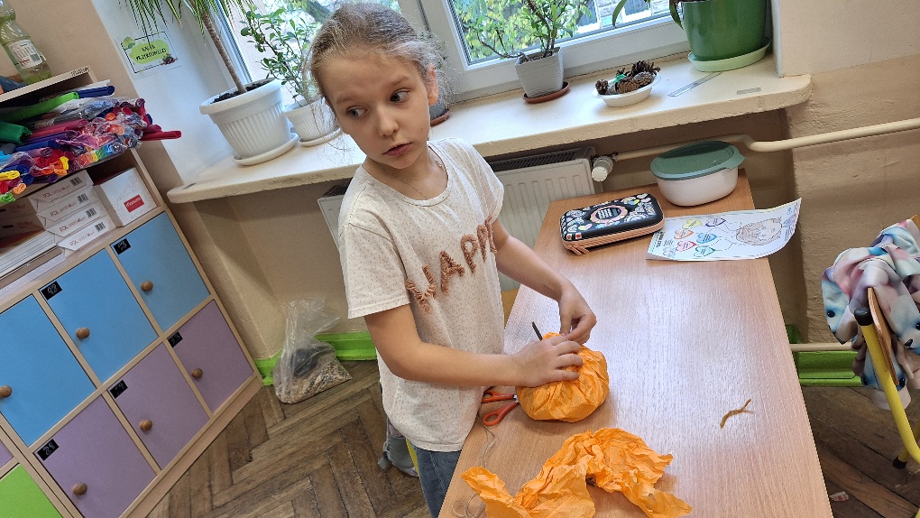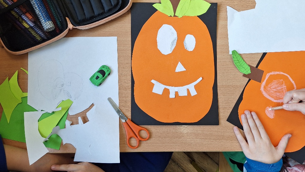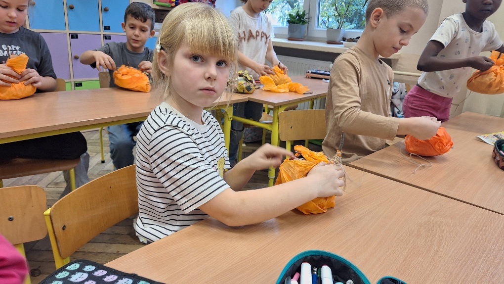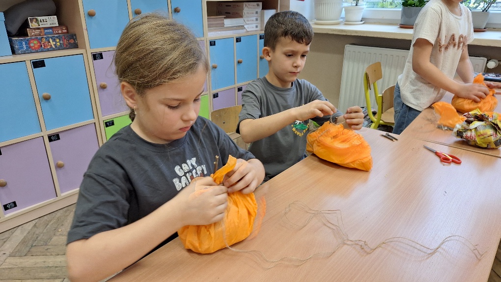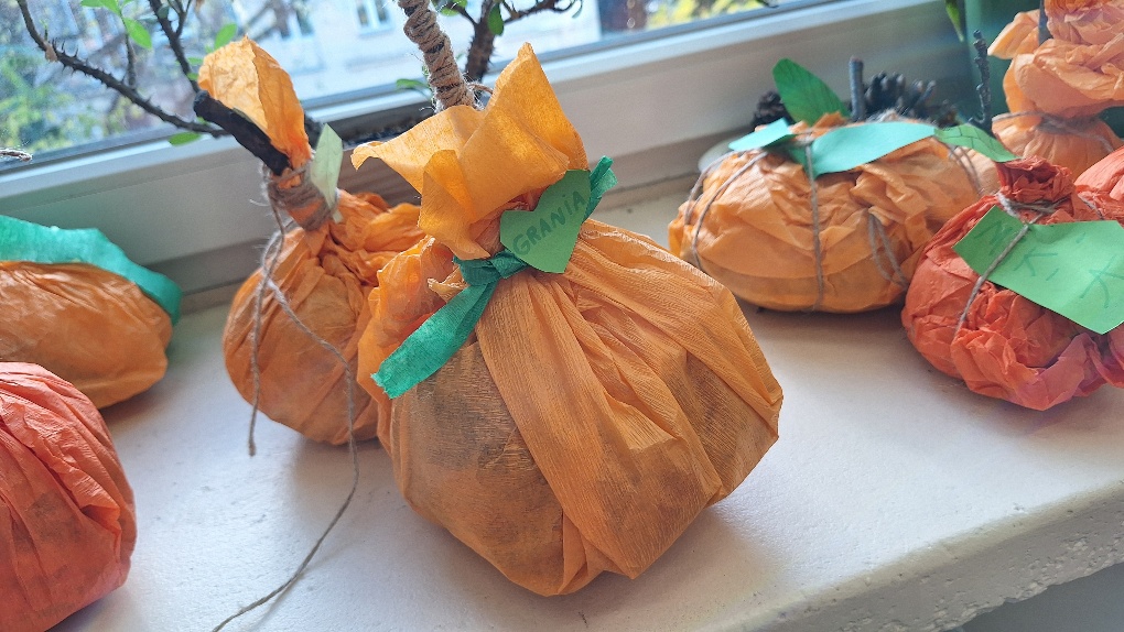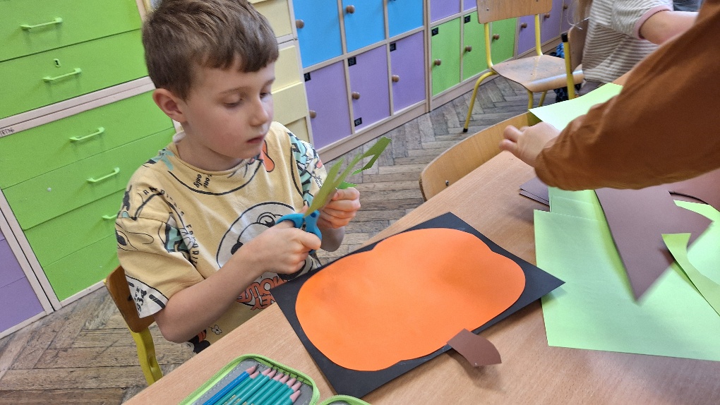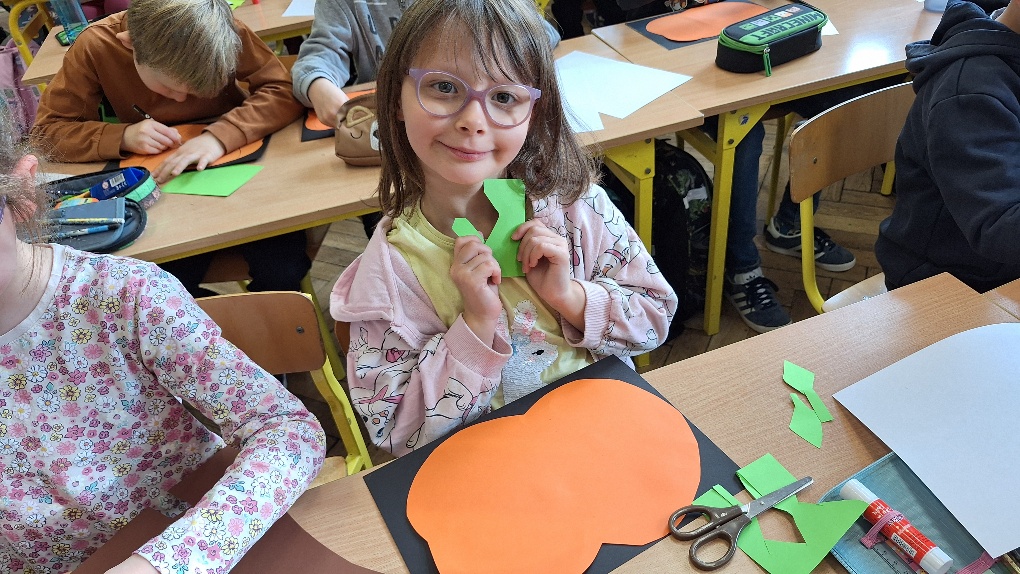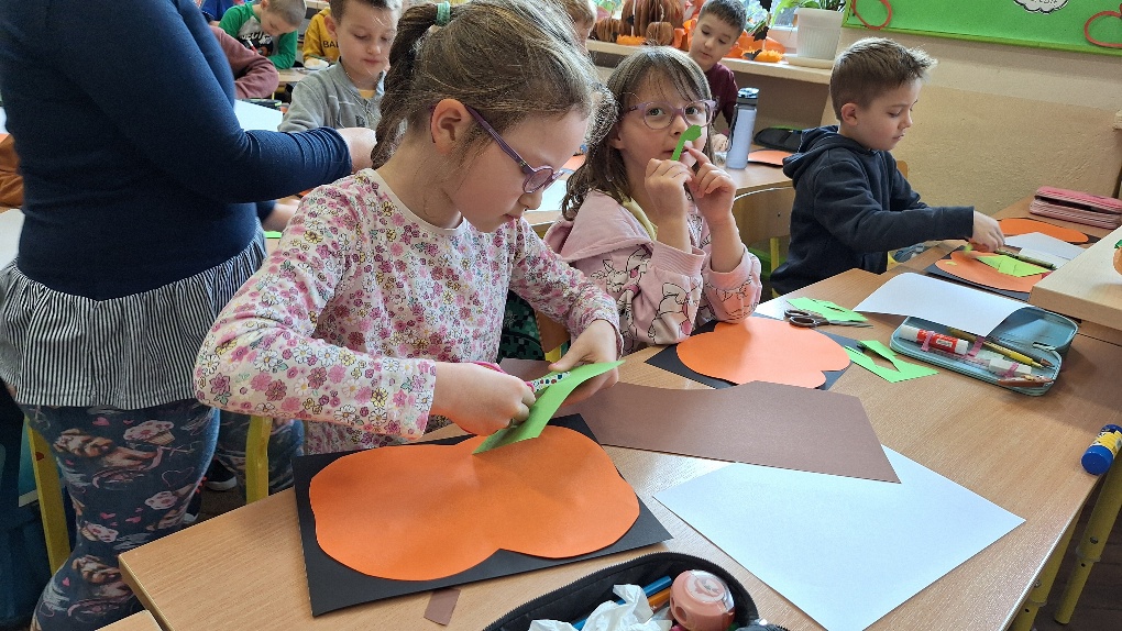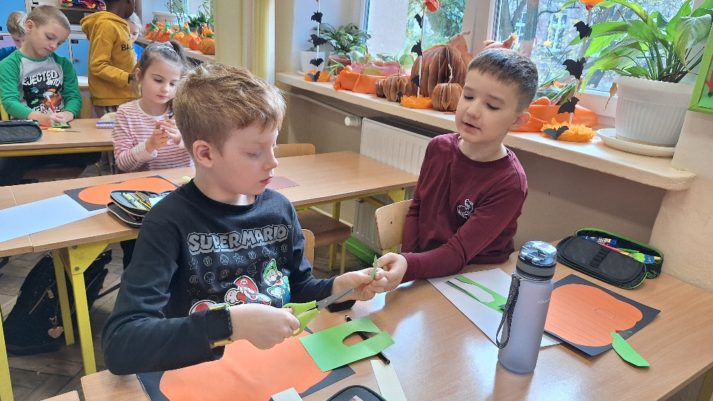 Podczas zajęć uczniowie tworzyli różnorodne prace plastyczne inspirowane motywem dyni. Powstały piękne rysunki, wyklejanki, a nawet przestrzenne kompozycje z papieru i gazet. Nie zabrakło także zabaw ruchowych, dzięki którym pierwszoklasiści mogli połączyć naukę z dobrą zabawą.