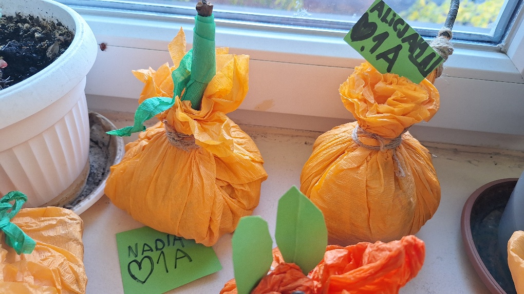 W ostatnim tygodniu października w klasie 1a zrobiło się wyjątkowo pomarańczowo i bardzo jesiennie. Pierwszoklasiści rozpoczęli bowiem przygotowania do świętowania Dnia Dyni– wydarzenia, które od kilku lat cieszy się dużą popularnością wśród dzieci. Dzieci przygotowywały dyniowe dekoracje, które wprowadziły wszystkich w radosny, jesienny nastrój. Na klasowym parapecie oraz na gazetce klasowej królowały więc przede wszystkim dynie, a każda z nich zachwycała swoim wyglądem.