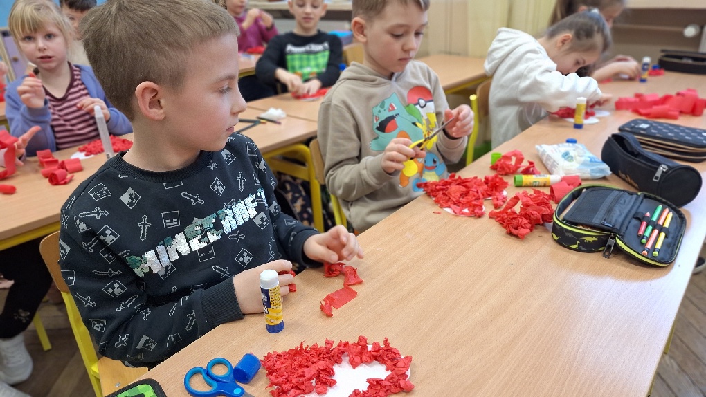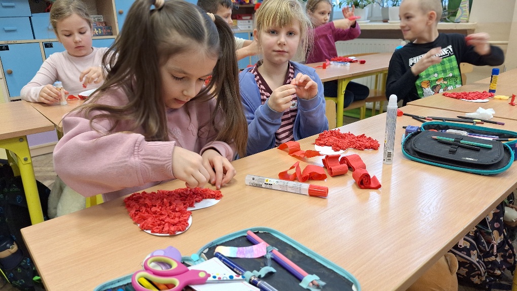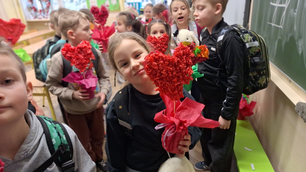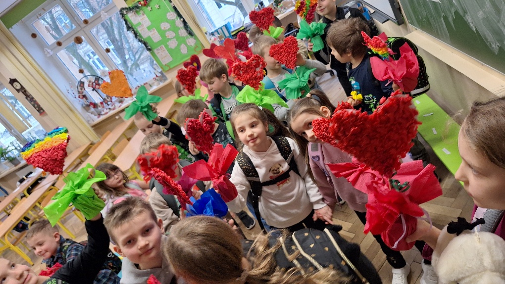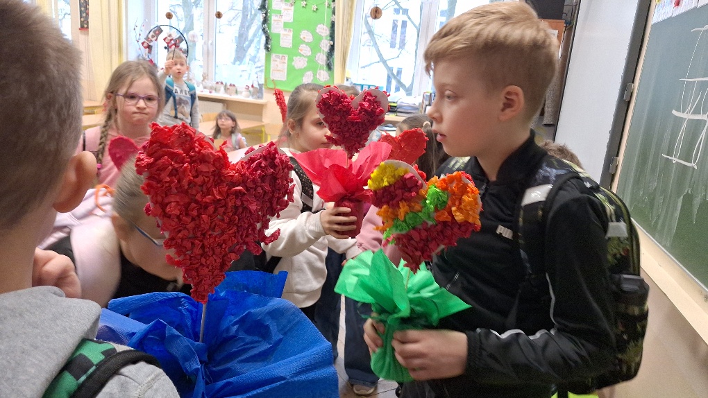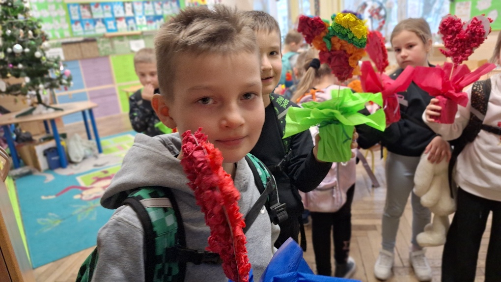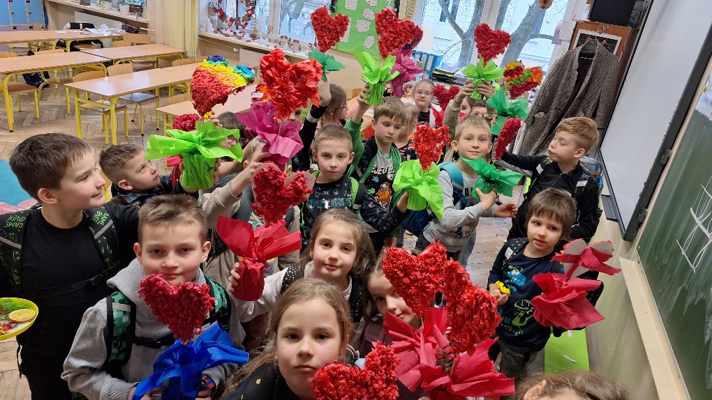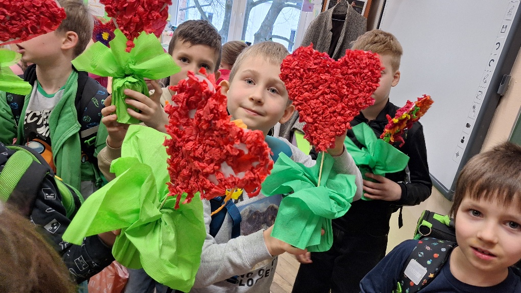 Uczniowie klasy 1a pamiętali o swoich babciach i dziadkach z okazji ich święta. Dzieci własnoręcznie wykonały drobne upominki w postaci kwiatów w kształcie serc jako symbol wyjątkowej miłości do Dziadków.