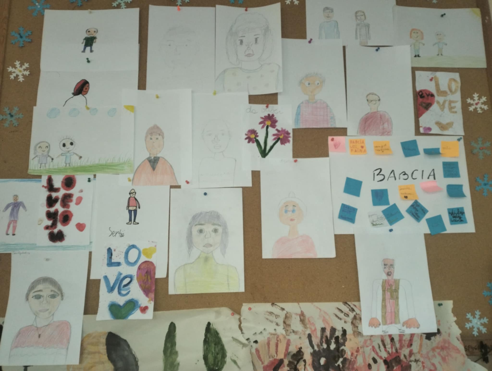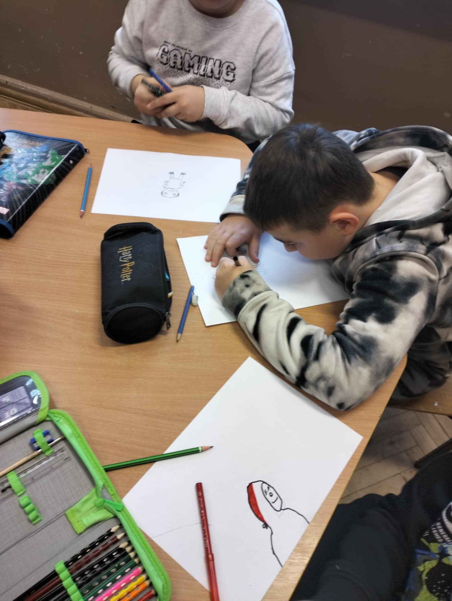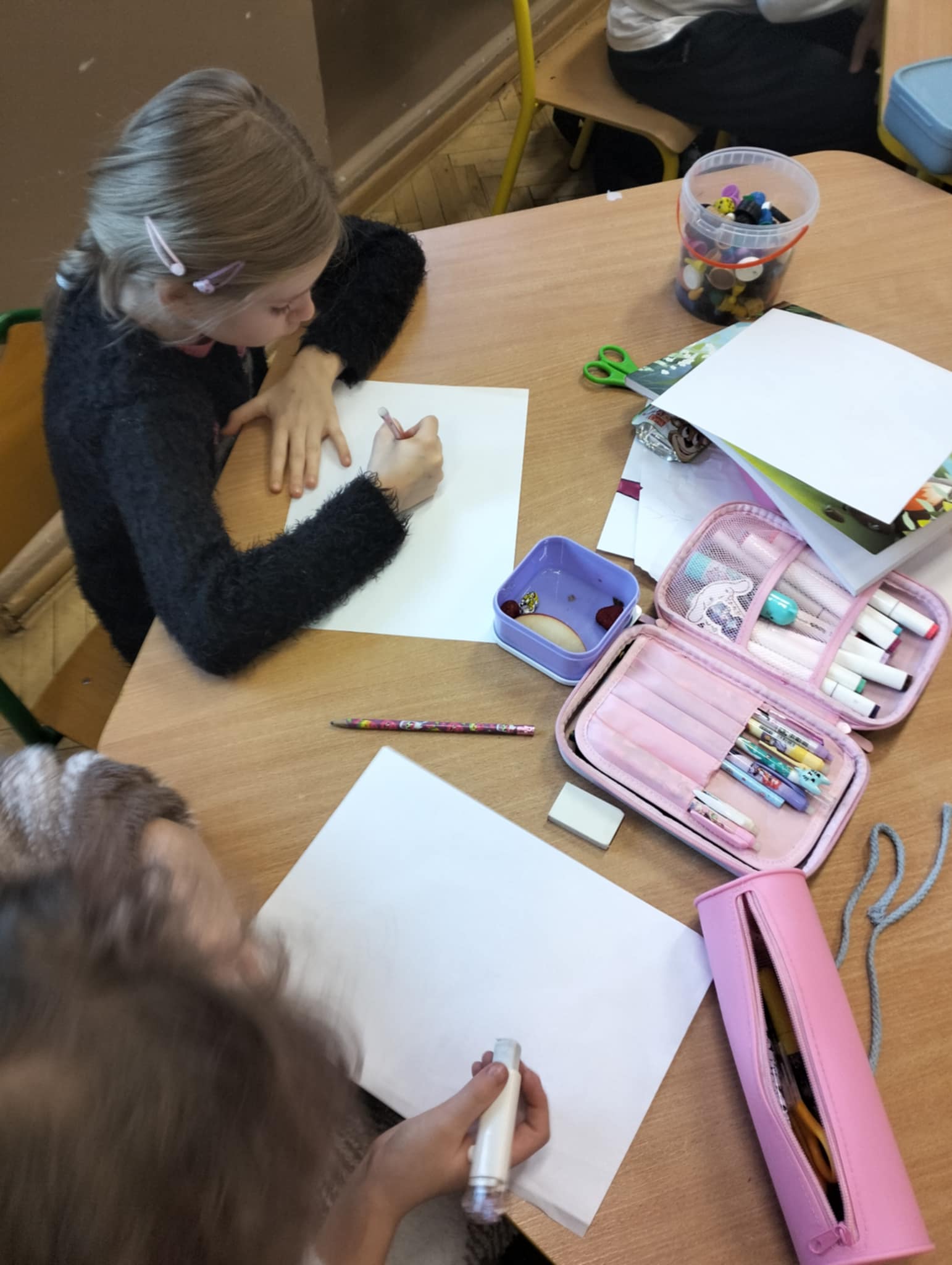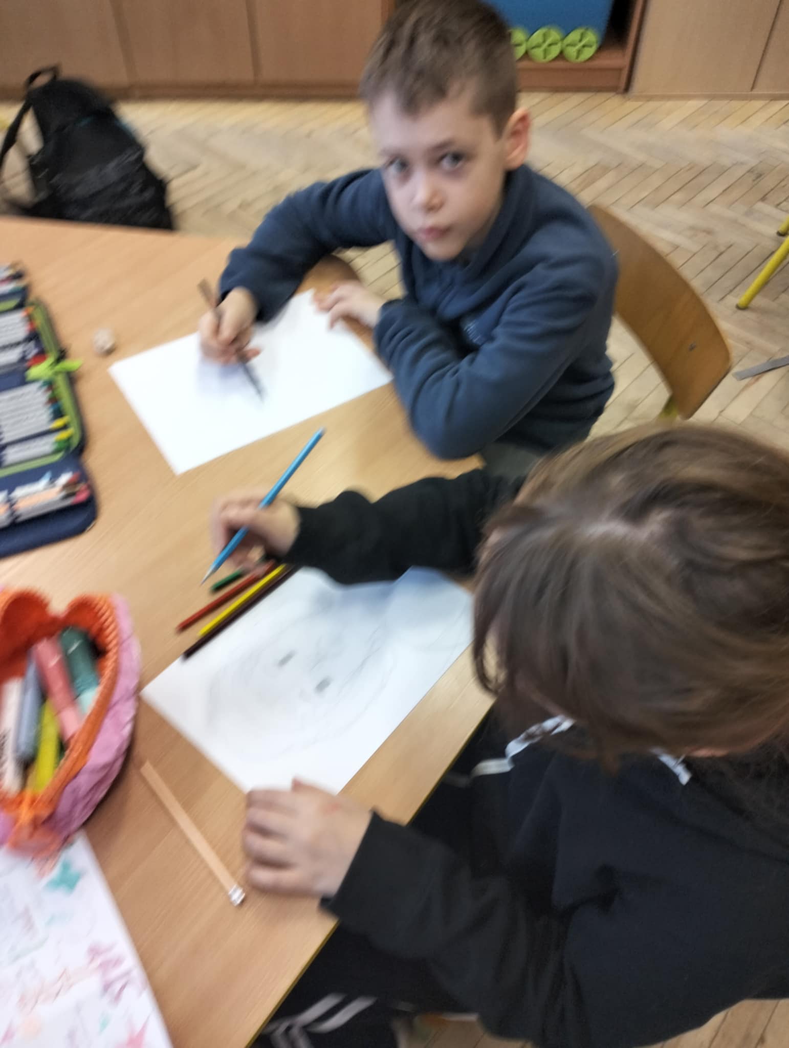 Dzieci upamiętniając swoich dziadków tworzyli portrety w formie szkicu i rysunku.