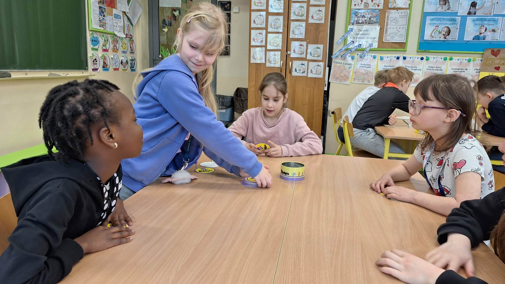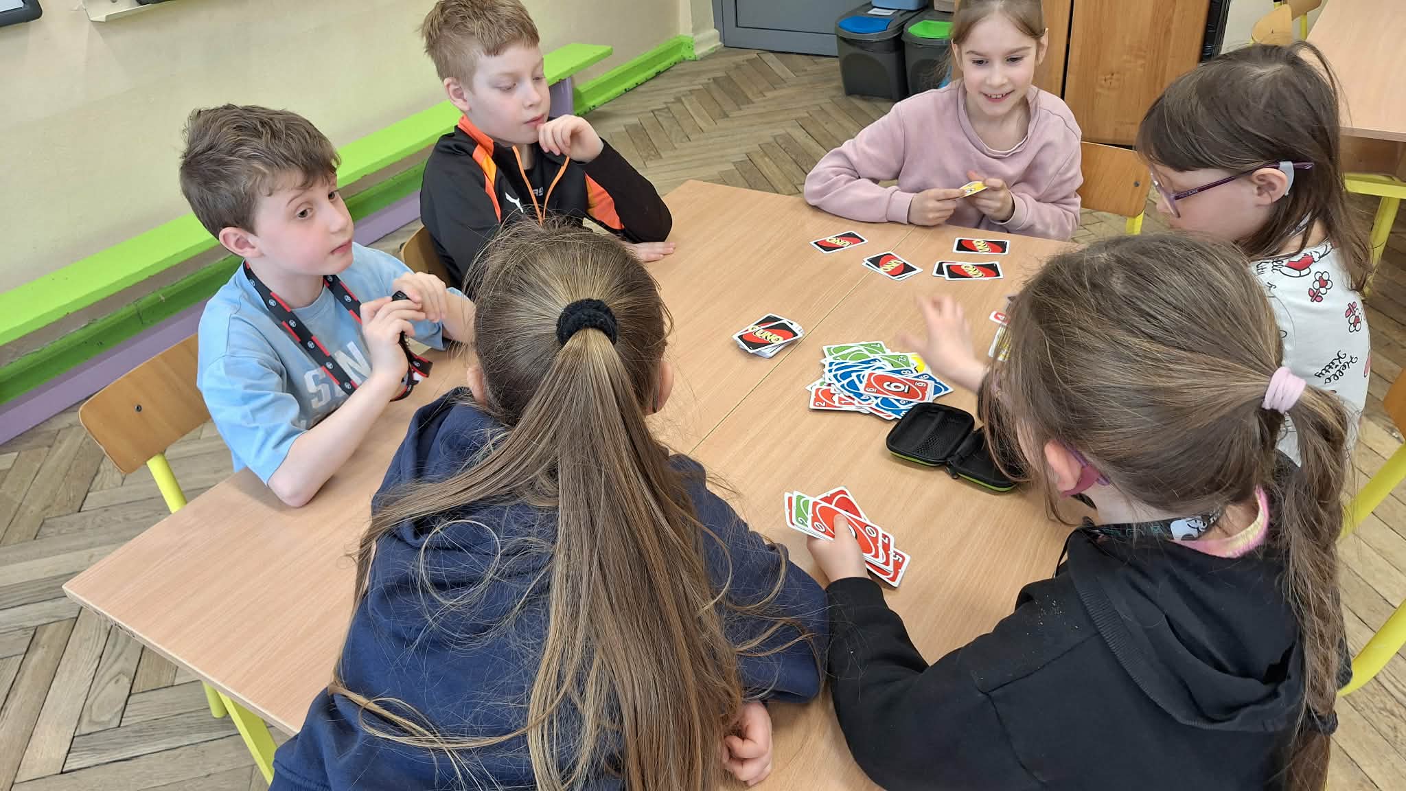 21 kwietnia w klasie 1a odbyła się kolejna, trzecia już i zarazem ostatnia, tura Dnia Gier Planszowych! Tym razem wśród gier znalazły się takie pozycje, jak: "Rodzina Treflików i Spy Guy KOSMOS", "Zamek Kombo", "Dobble", "Wyskakujące frytki", "Minionki" oraz "UNO".