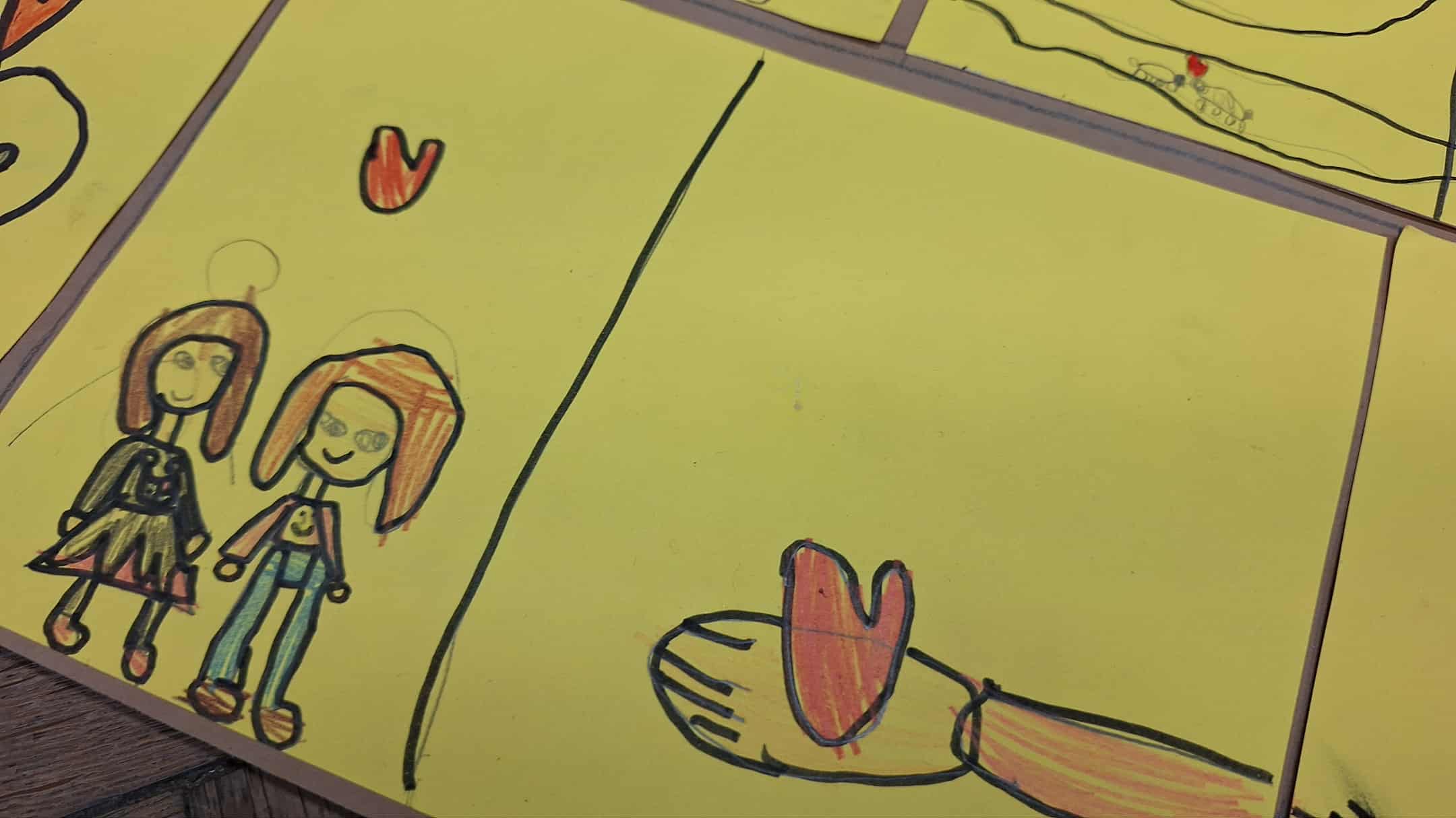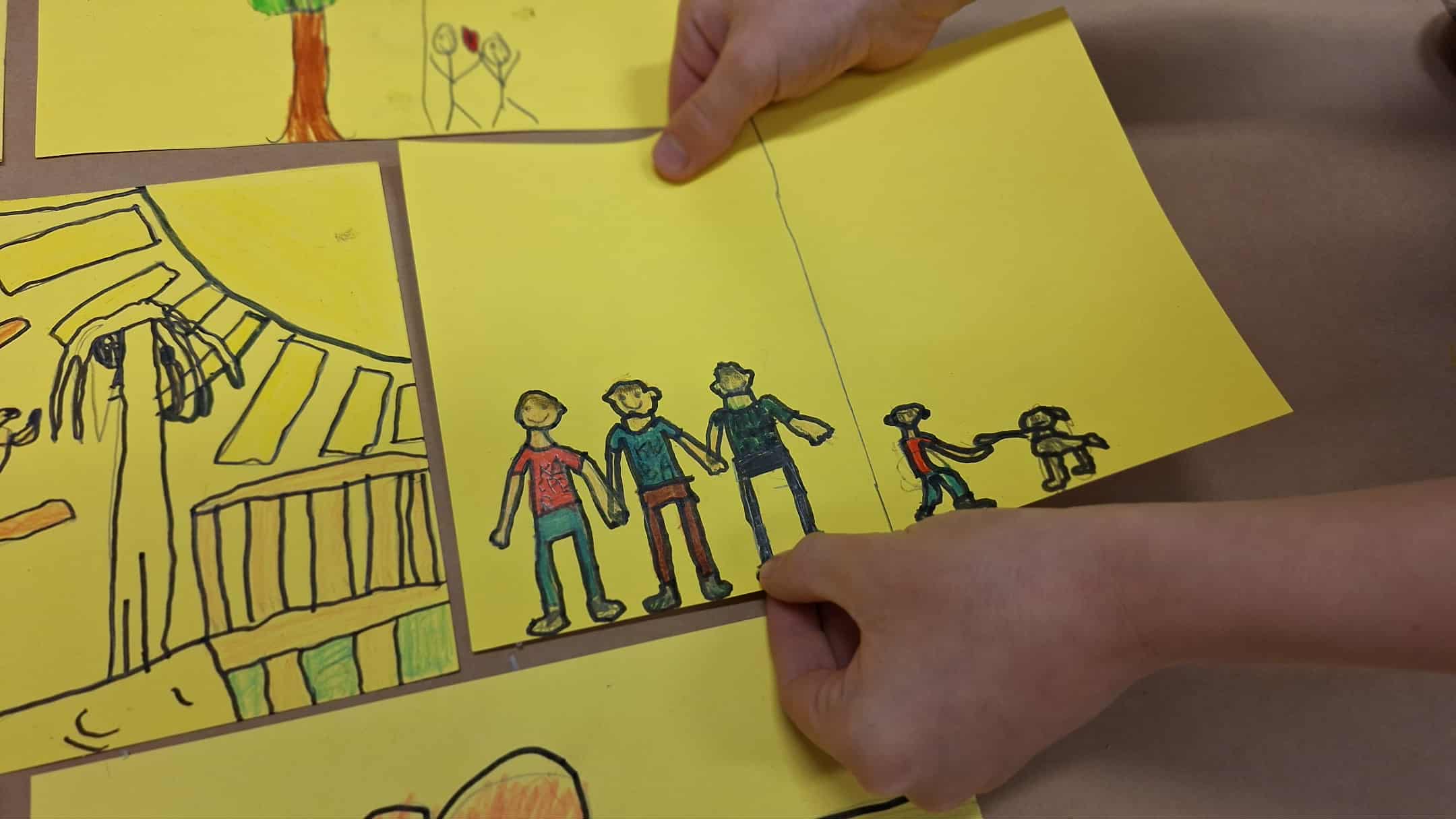 Pierwszoklasiści wysłuchali "Bajki o ciepłym i puchatym", po której wybrzmiała dyskusja na temat dobra (ciepłe i puchate) i zła (kolczaste), które towarzyszą ludzkości od zawsze.