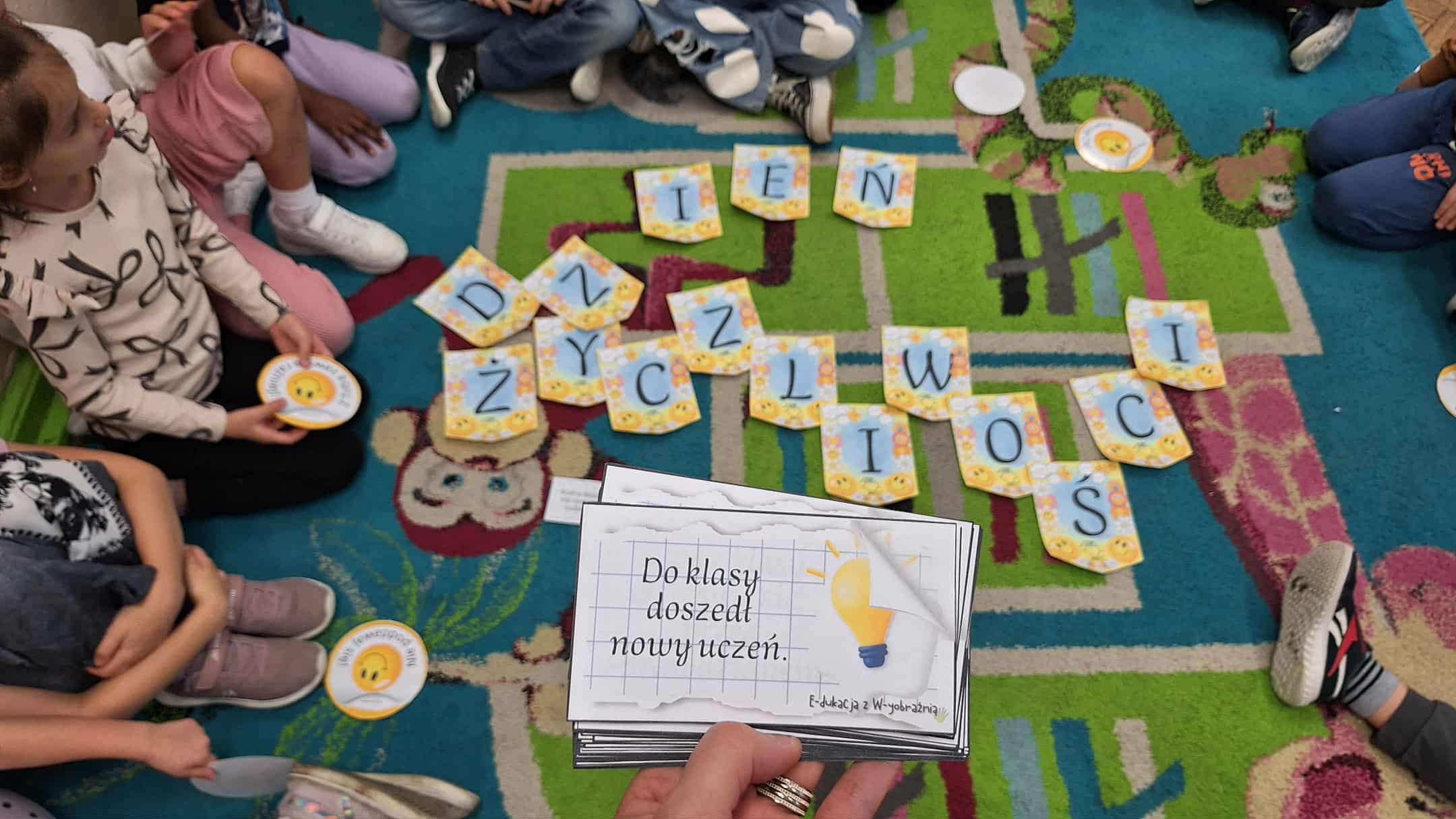 Następnym etapem zajęć były karty tzw. "Sytuacji trudnych". I tutaj pierwszoklasiści: