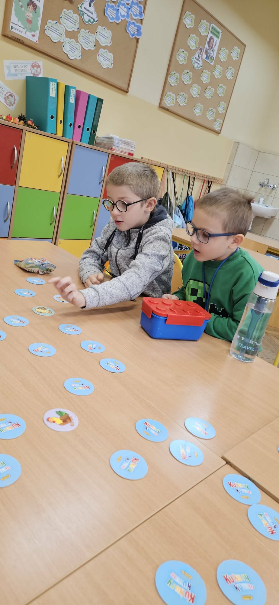 Uczniowie klasy 2b podczas zajęć rozwijających realizują zadania innowacji pedagogicznej „Planszówkowa Akademia Kompetencji Kluczowych”