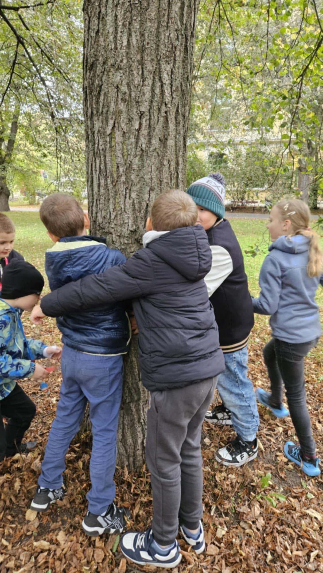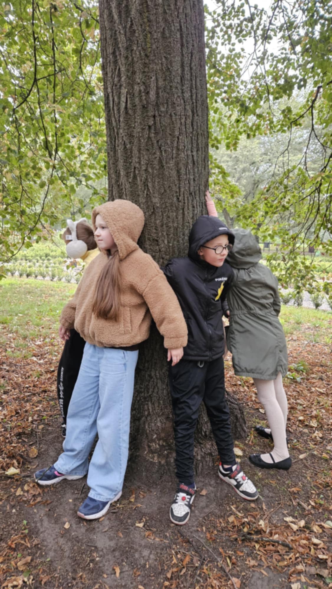 Na zakończenie, w ramach relaksacji, uczniowie wzięli udział w sylwoterapii – przytulając się do drzew i czerpiąc z natury spokój oraz dobrą energię.