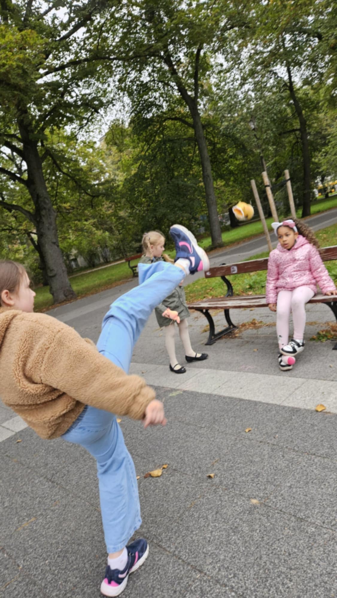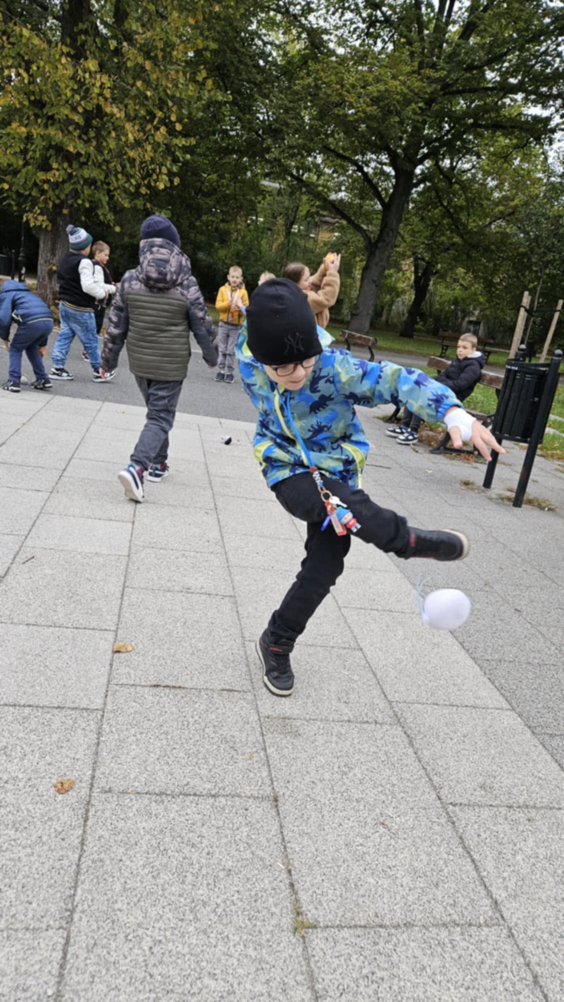 Dzieci z klasy 2b spędziły dzisiejsze zajęcia wychowania fizycznego w parku, gdzie z ogromnym zaangażowaniem grały w zośkę – oczywiście przy użyciu zośek własnoręcznie wykonanych podczas wcześniejszych zajęć.