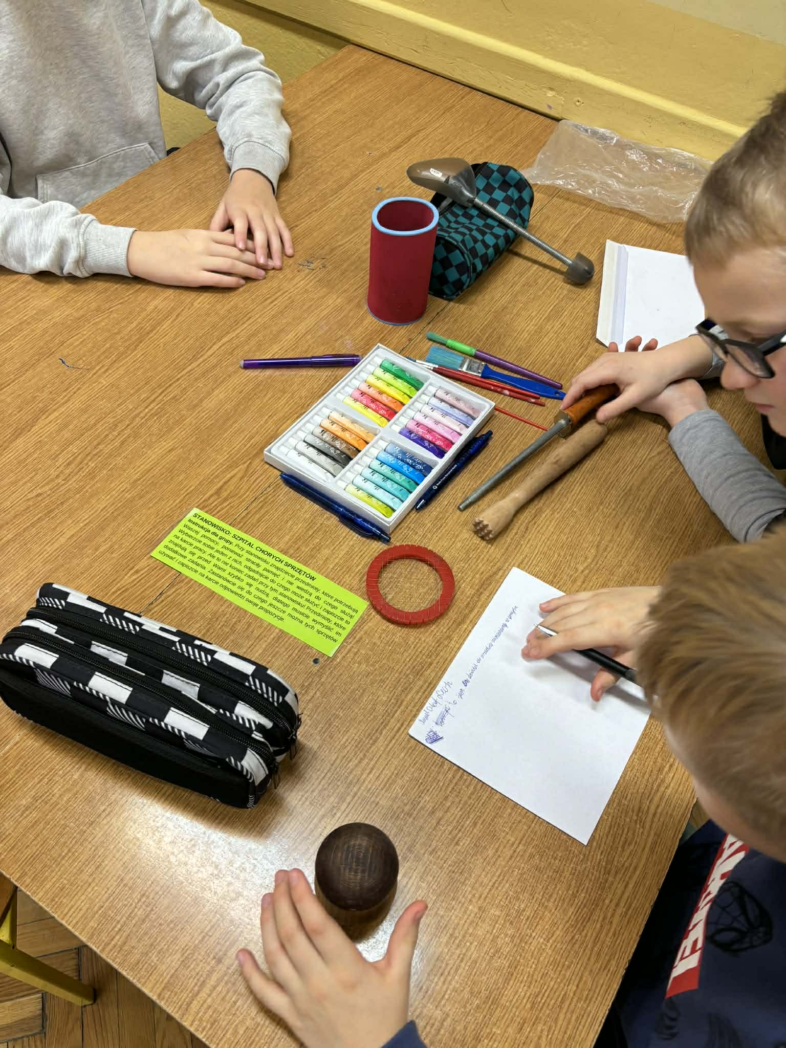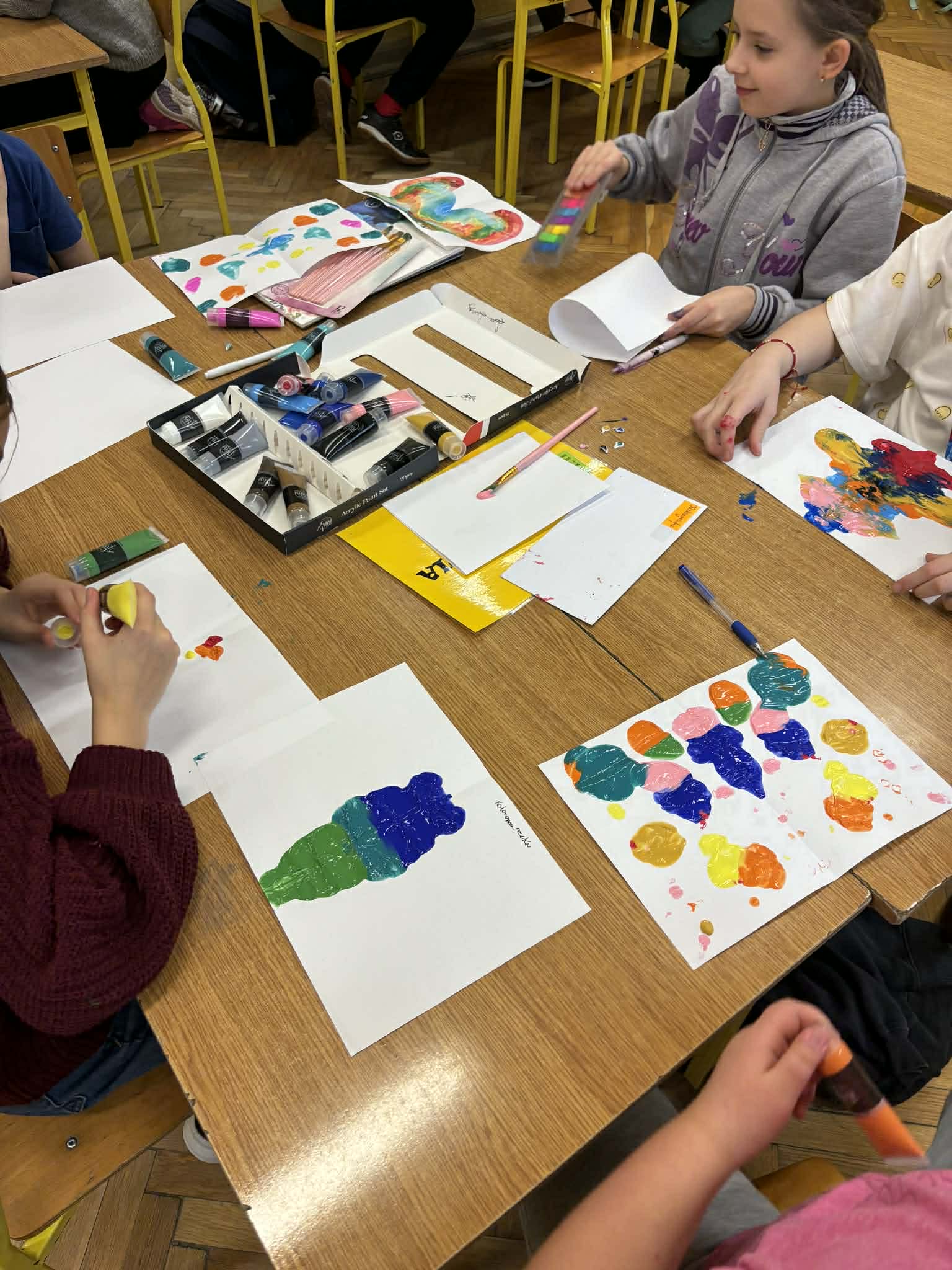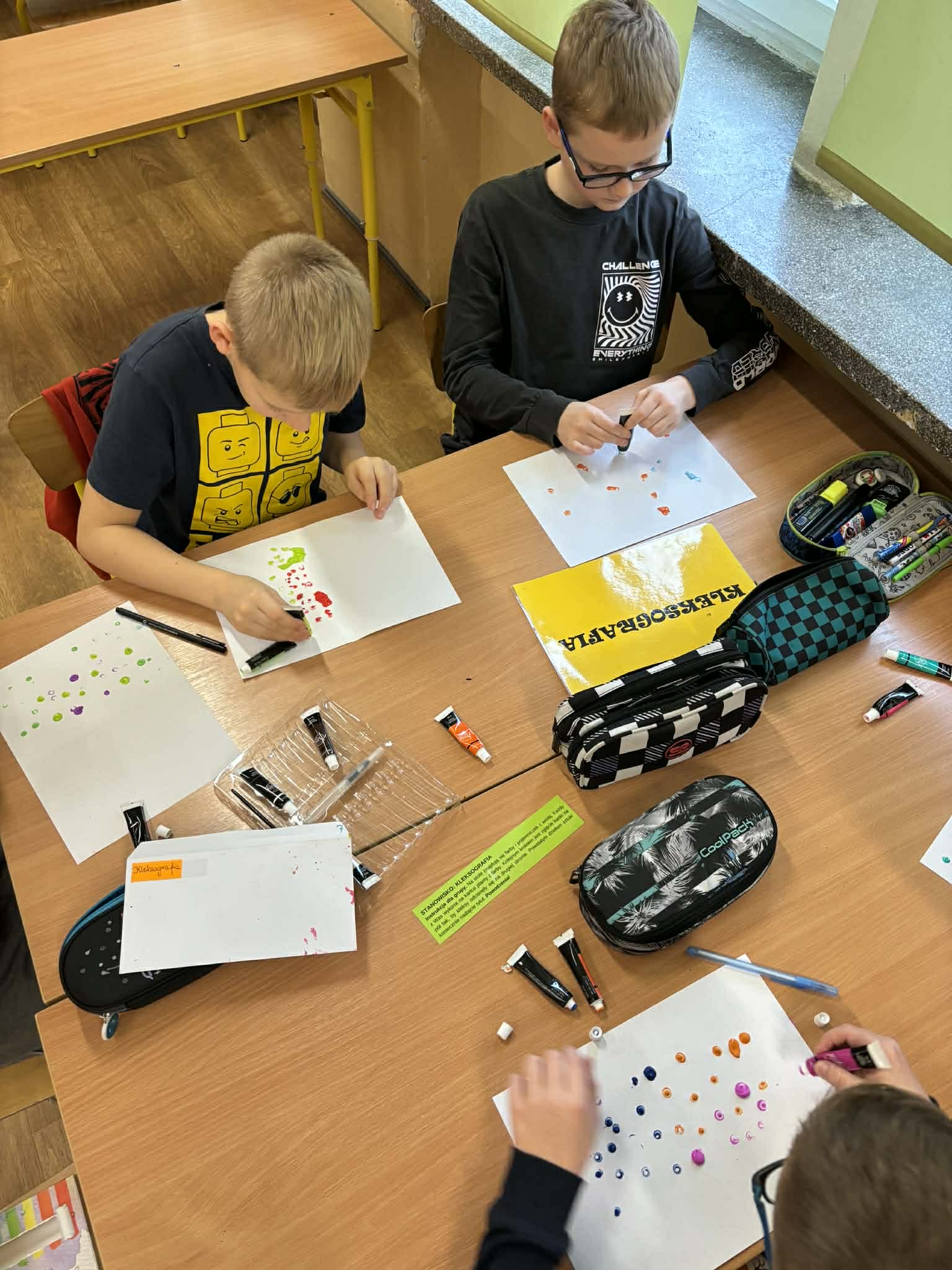 Aktywne podsumowanie wiadomości z lektury dzięki stacjom zadaniowym. Klasa 4a na zakończenie omawiania „Akademii pana Kleksa” pracowała w grupach, przenosząc się do fantastycznego świata książki. Uczniowie mieli okazję uczestniczyć w wyjątkowych lekcjach kleksografii, przędzenia liter i geografii, a także uleczali przedmioty codziennego użytku w szpitalu chorych sprzętów.