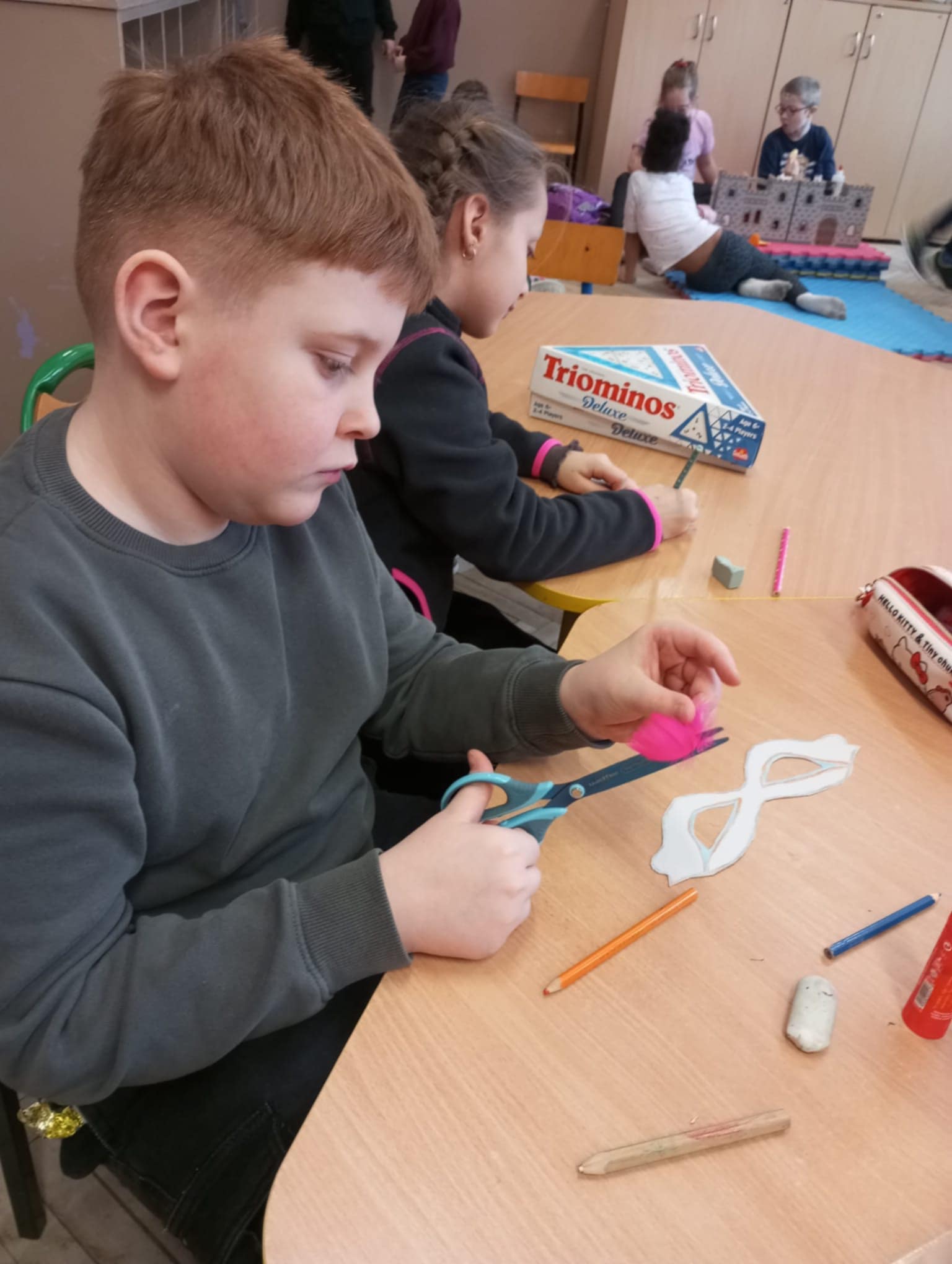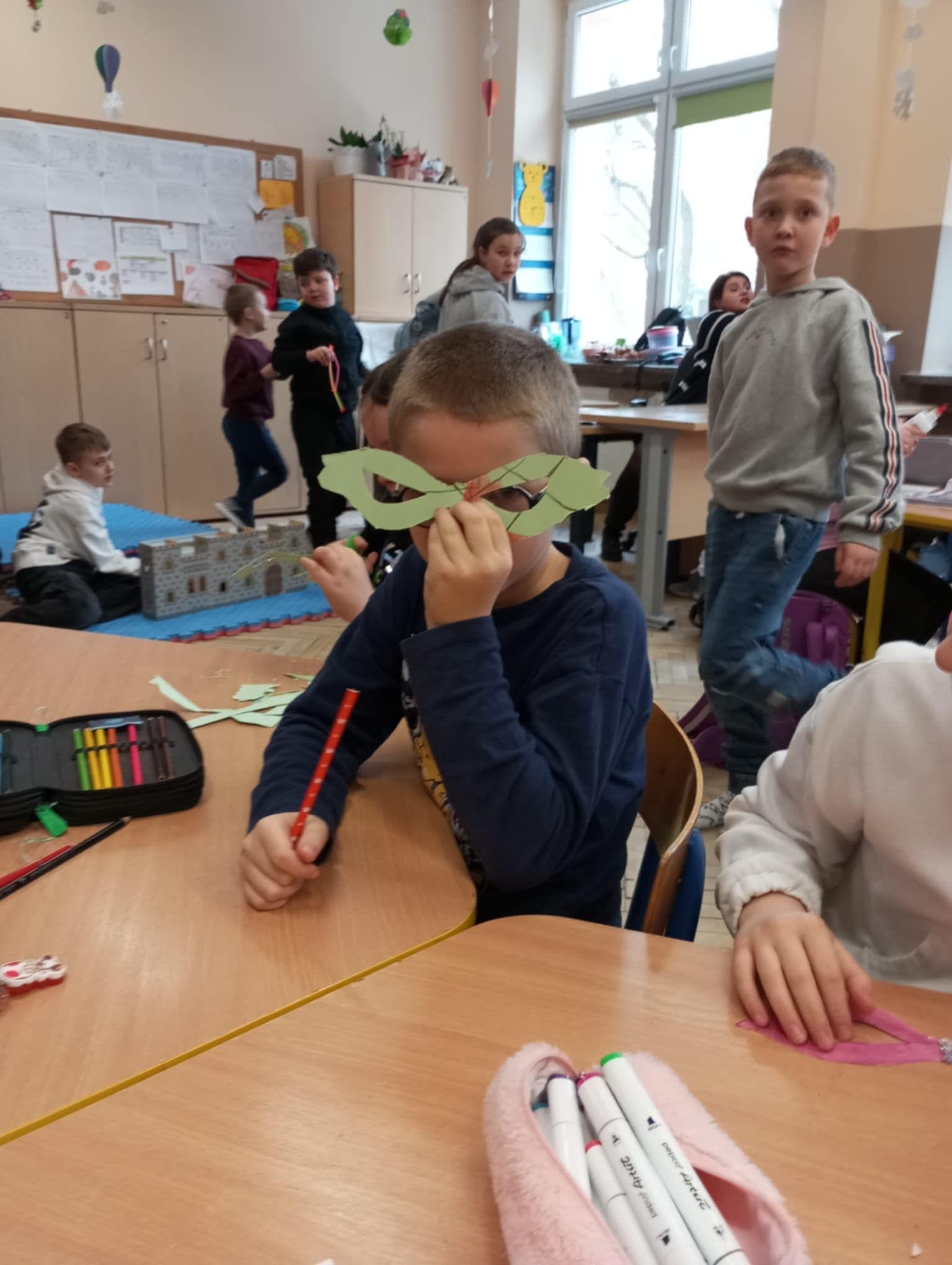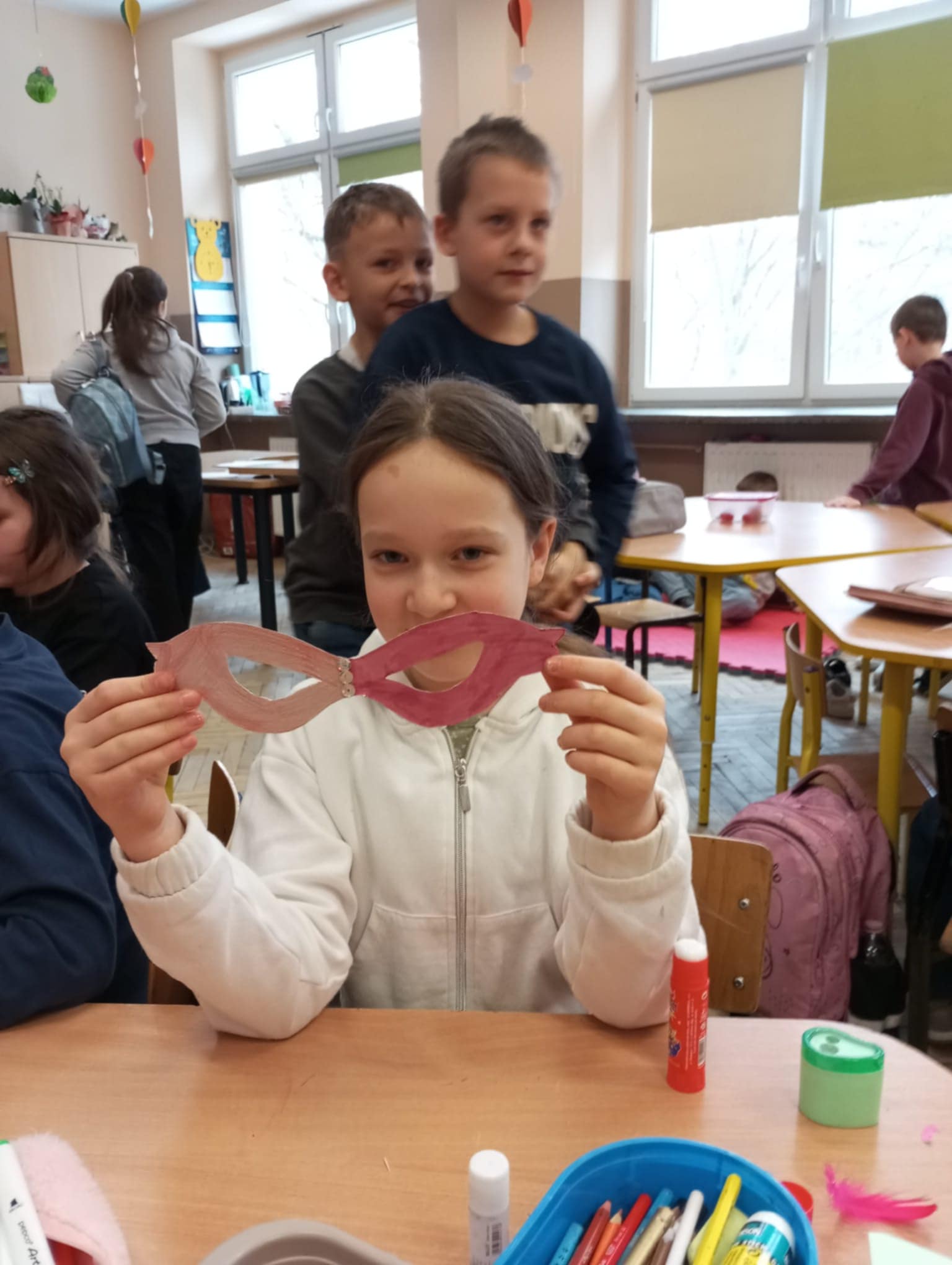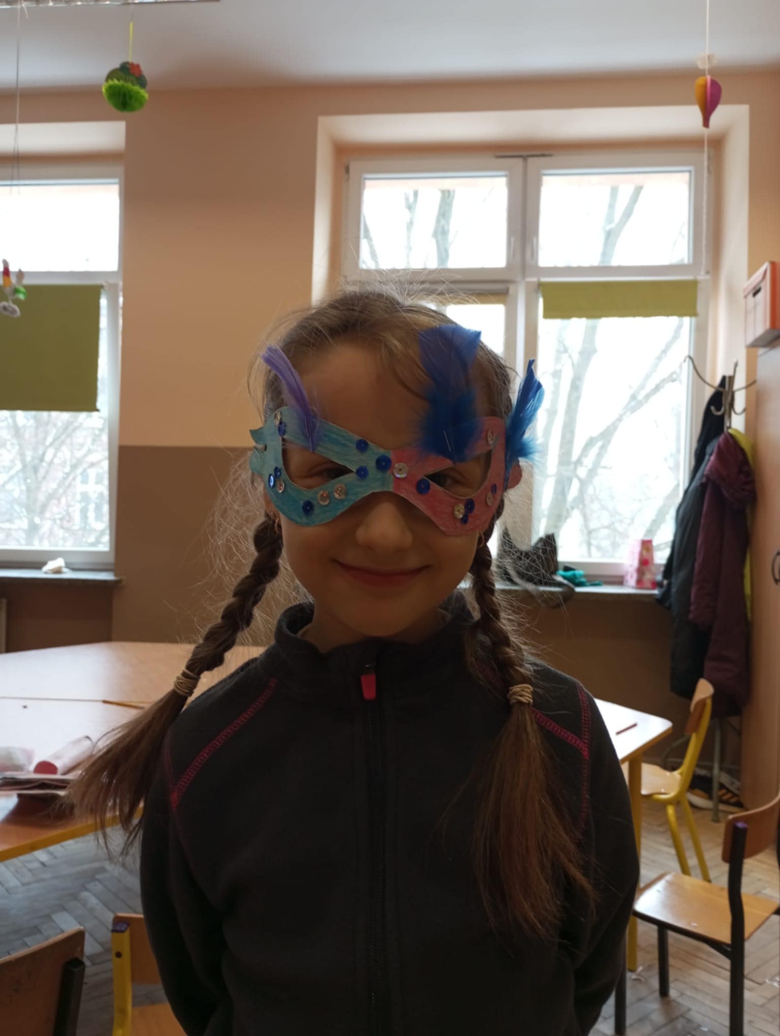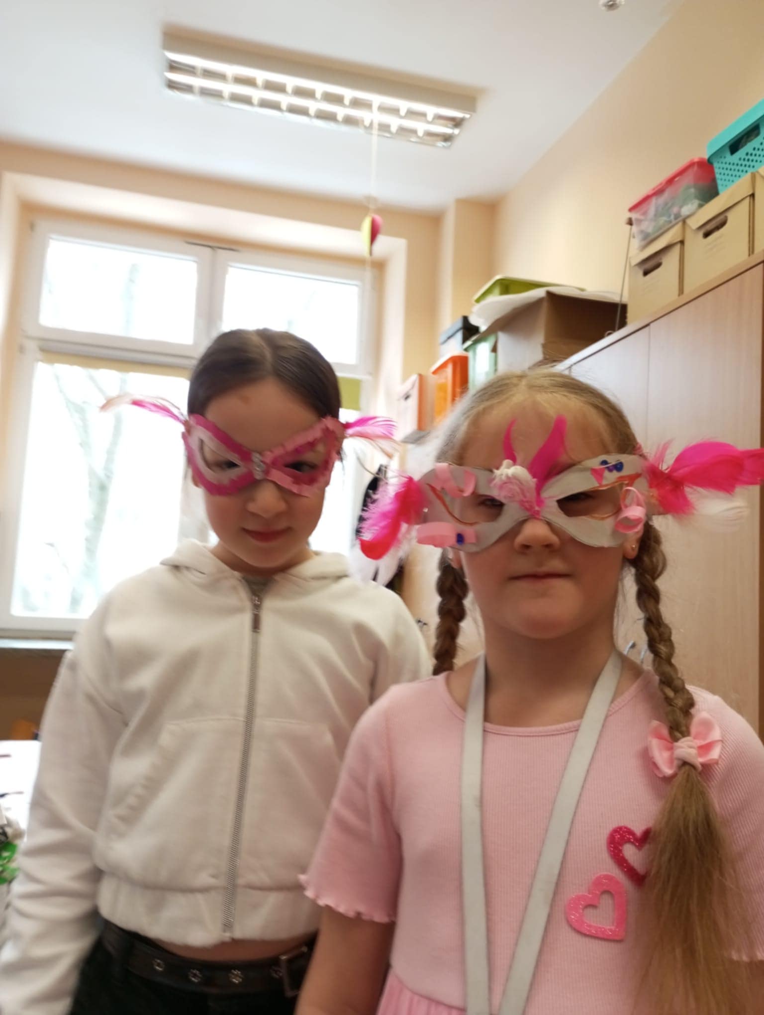 W naszej świetlicy szkolnej wykonaliśmy własne maski karnawałowe i idziemy na bal...