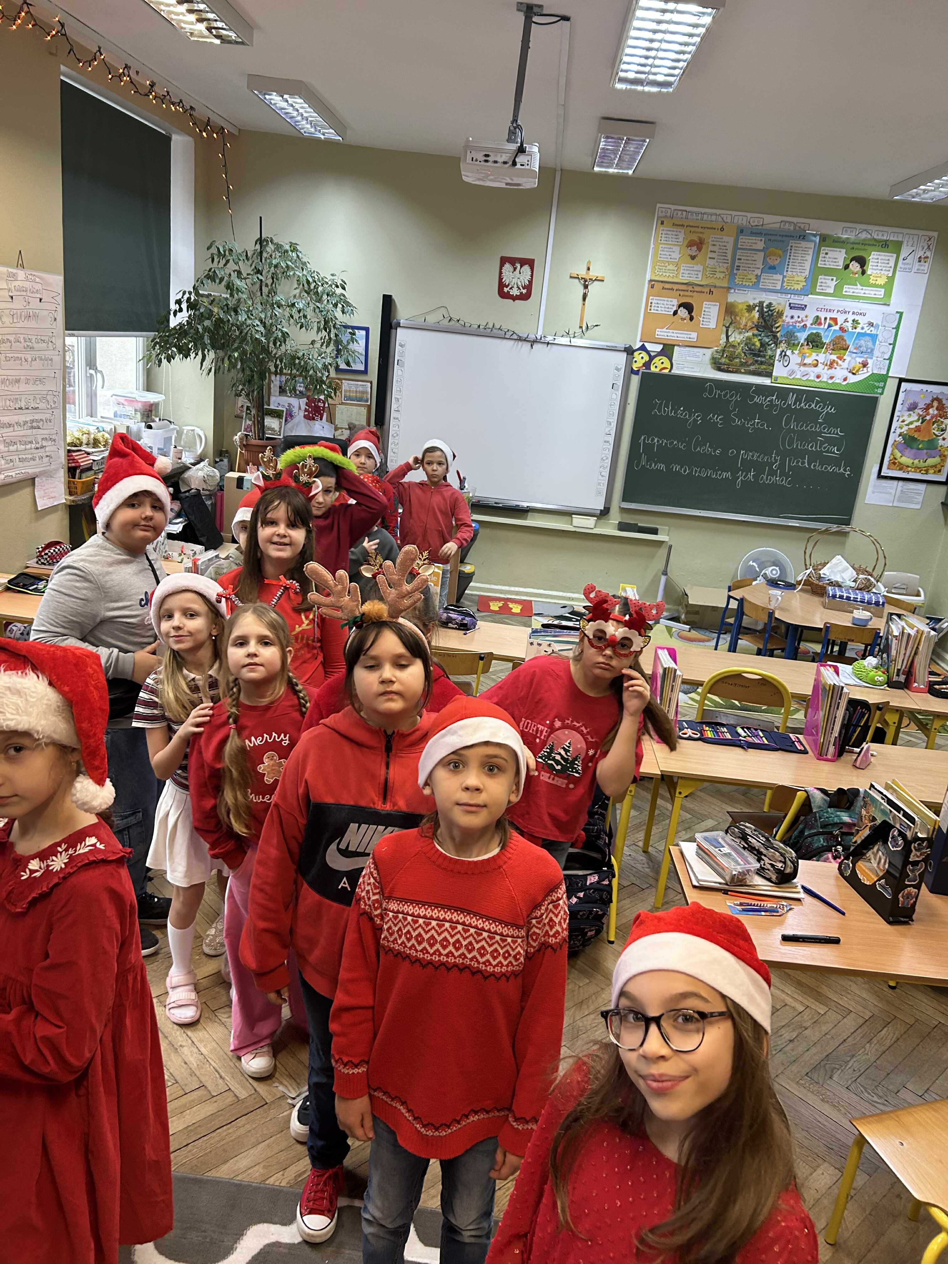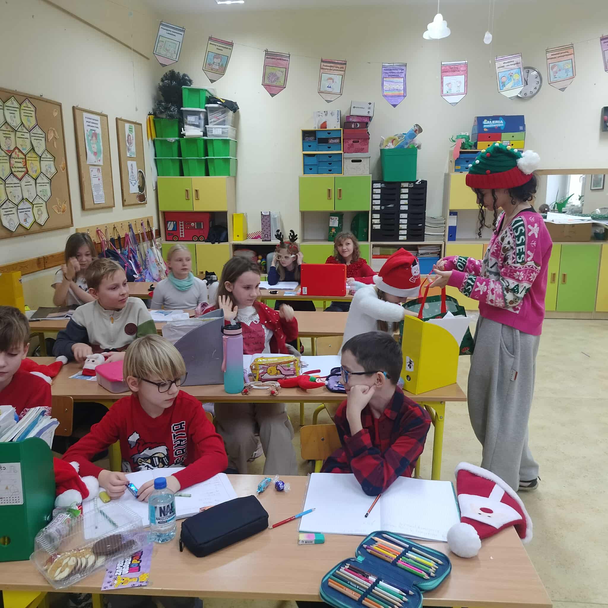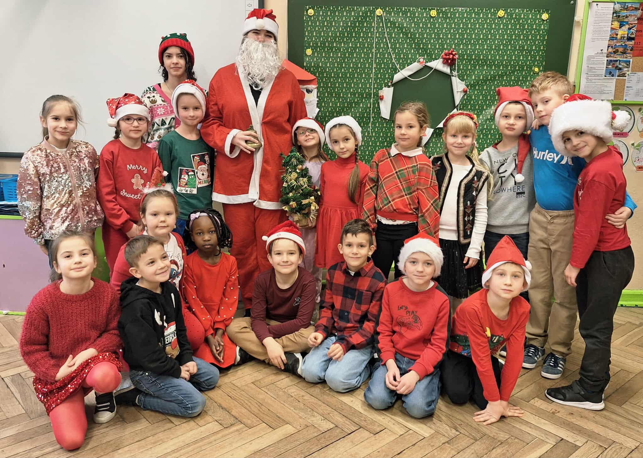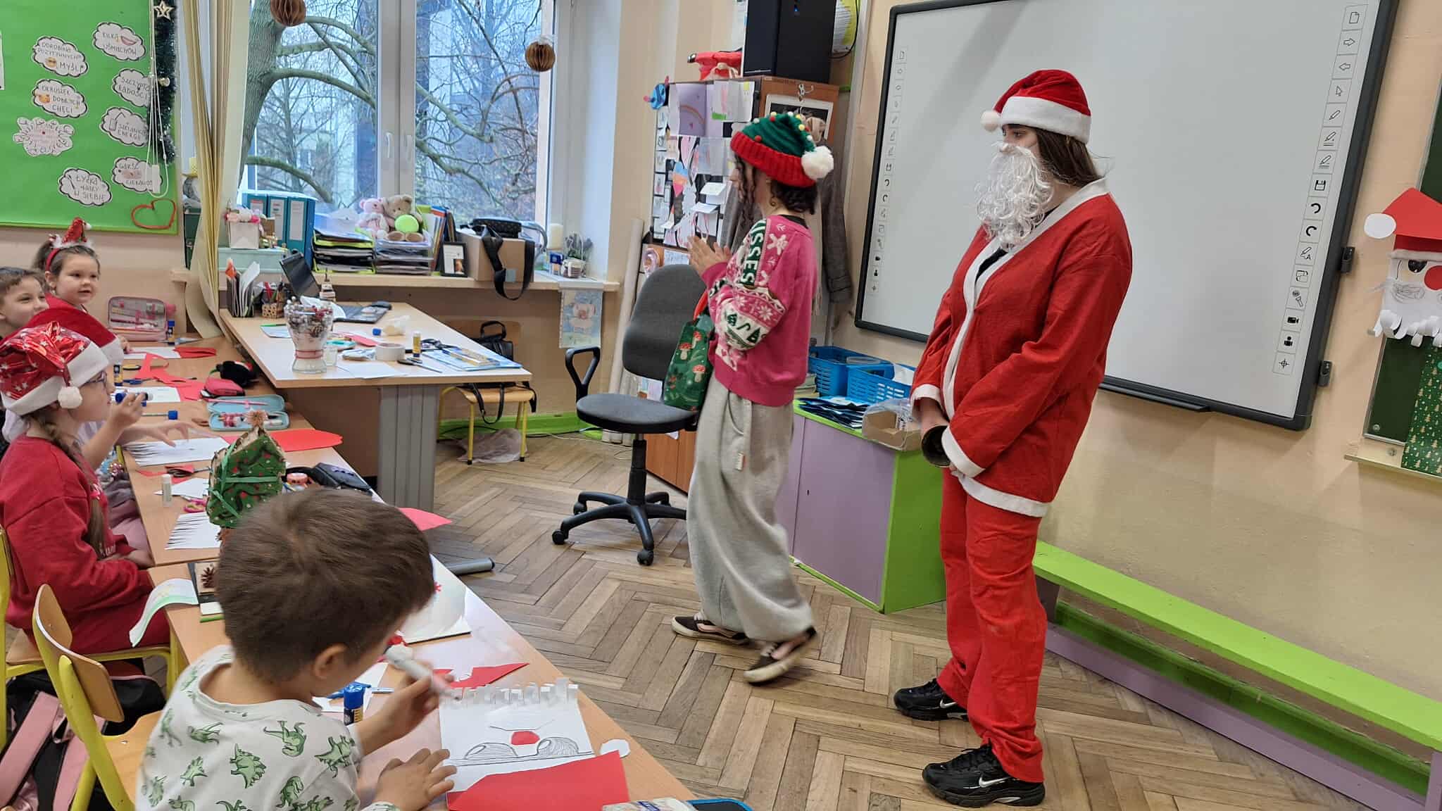 Mikołajki to jeden z takich dni, na które dzieci czekają przez cały rok! W klasach 1-3 tradycyjnie obchody te odbyły się w kuluarach sal lekcyjnych, gdzie na dzieci czekały różnorodne atrakcje. Najmłodsi uczestniczyli aktywnie we wszelakich grach i zabawach, obejrzeli filmy o tematyce mikołajkowej i oczywiście nie zabrakło kreatywnego działania w postaci prac plastycznych. Był też czas na pamiątkowe zdjęcia oraz drobne upominki. Wielką radość sprawił najmłodszym Mikołaj ze swym pomocnikiem Elfem, którzy częstowali cukierkami oraz ochoczo pozowali z dziećmi do wspólnych zdjęć.