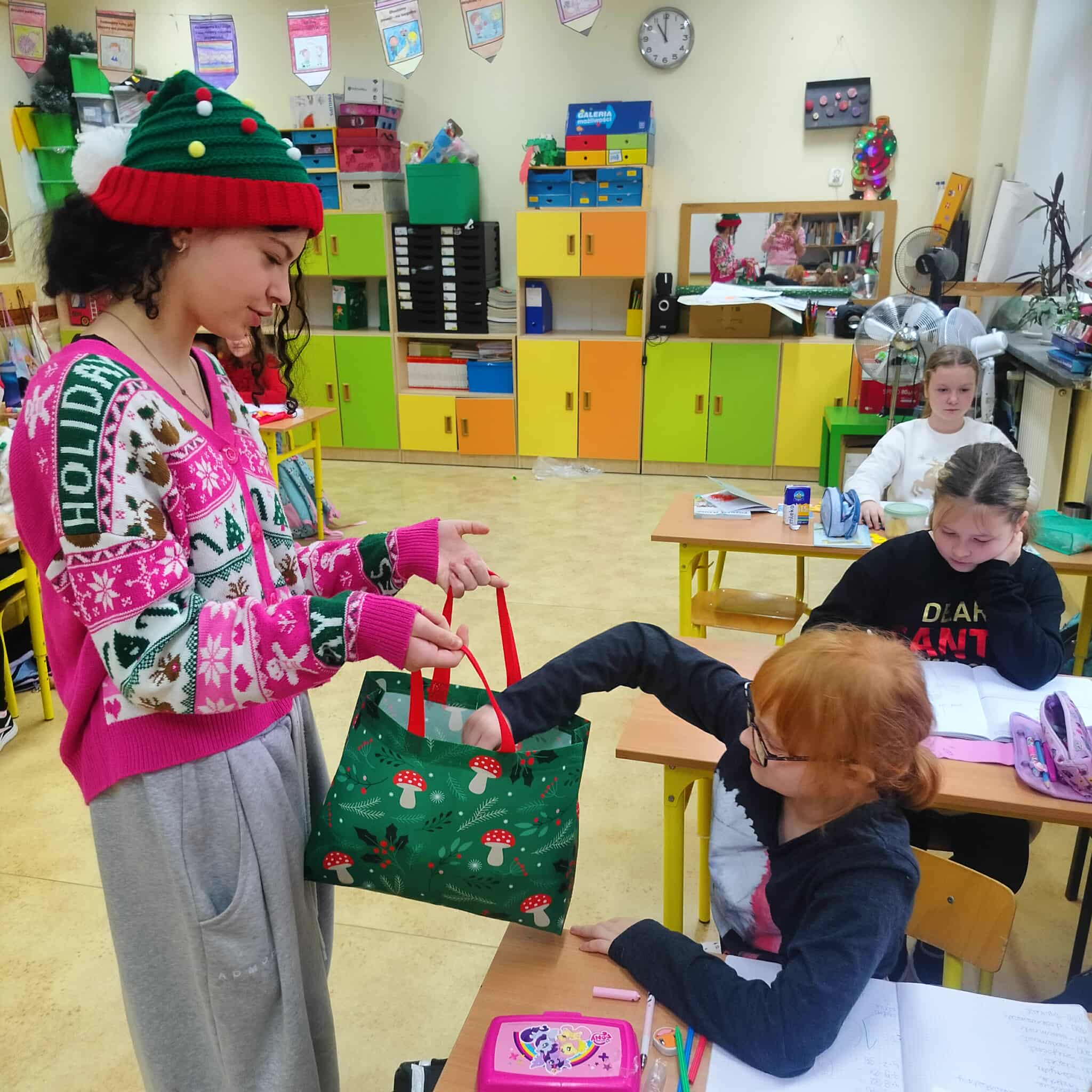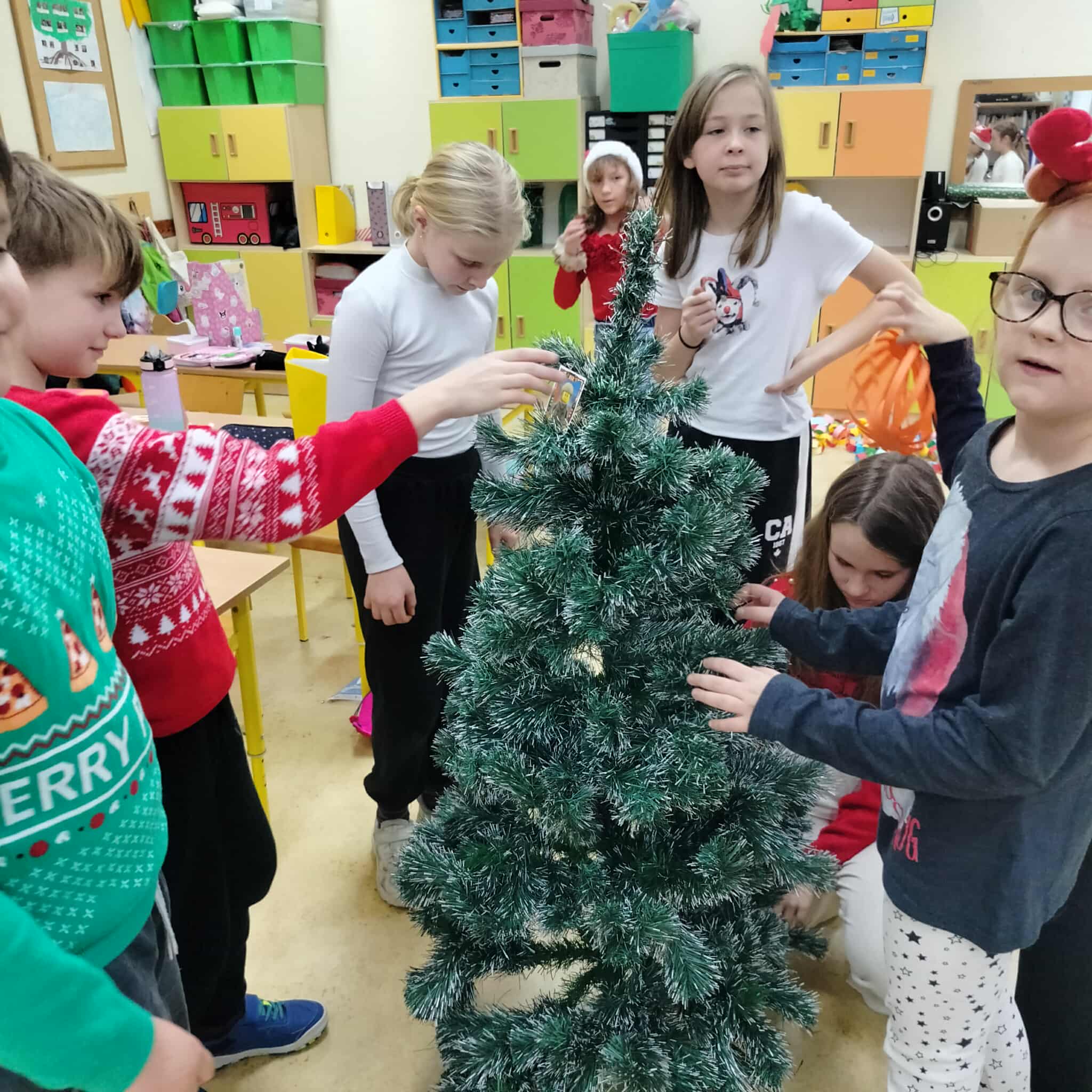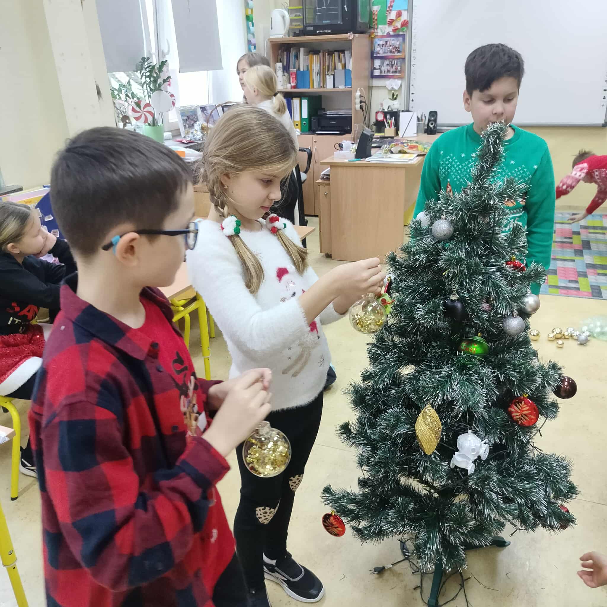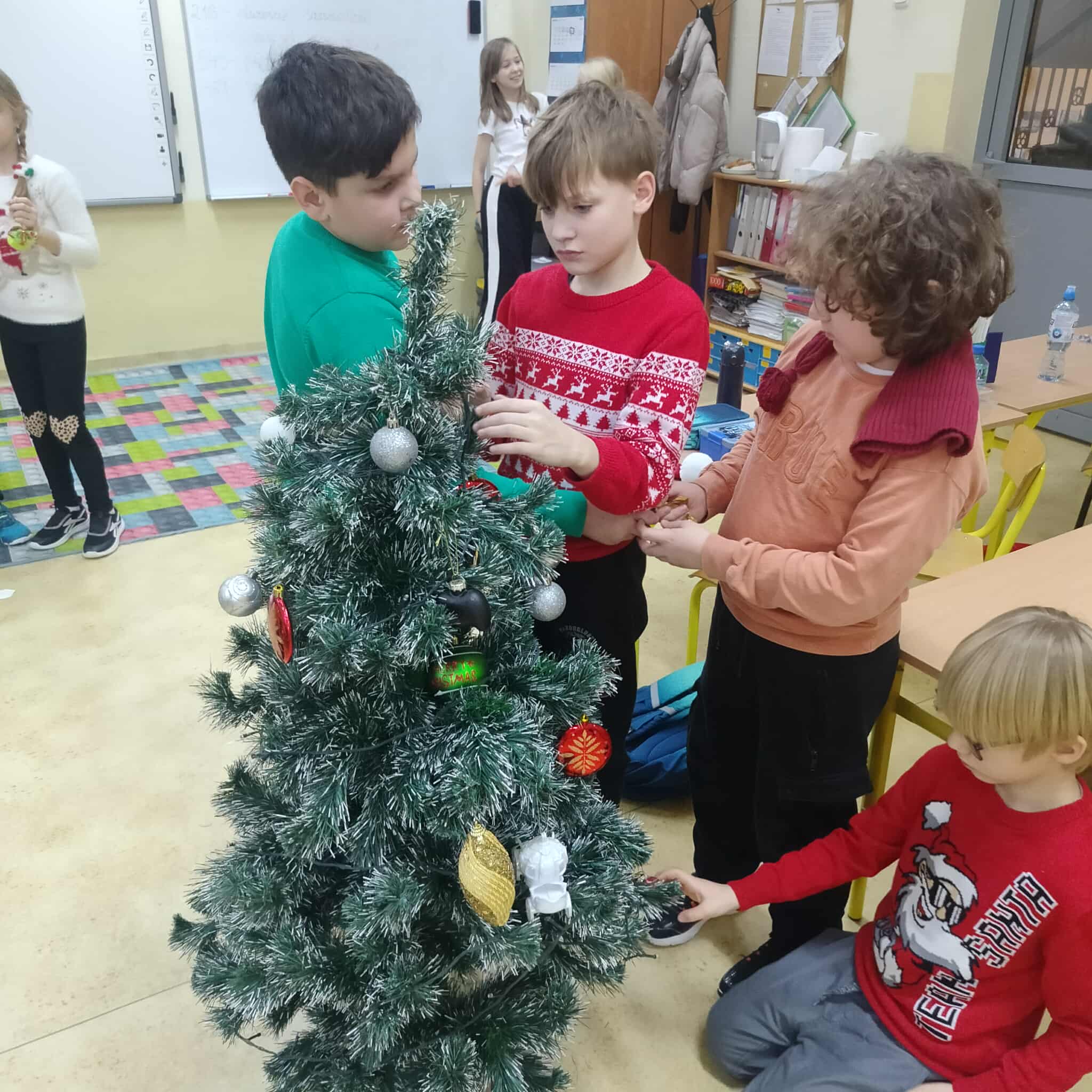 Mikołajki to jeden z takich dni, na które dzieci czekają przez cały rok! W klasach 1-3 tradycyjnie obchody te odbyły się w kuluarach sal lekcyjnych, gdzie na dzieci czekały różnorodne atrakcje. Najmłodsi uczestniczyli aktywnie we wszelakich grach i zabawach, obejrzeli filmy o tematyce mikołajkowej i oczywiście nie zabrakło kreatywnego działania w postaci prac plastycznych. Był też czas na pamiątkowe zdjęcia oraz drobne upominki. Wielką radość sprawił najmłodszym Mikołaj ze swym pomocnikiem Elfem, którzy częstowali cukierkami oraz ochoczo pozowali z dziećmi do wspólnych zdjęć.