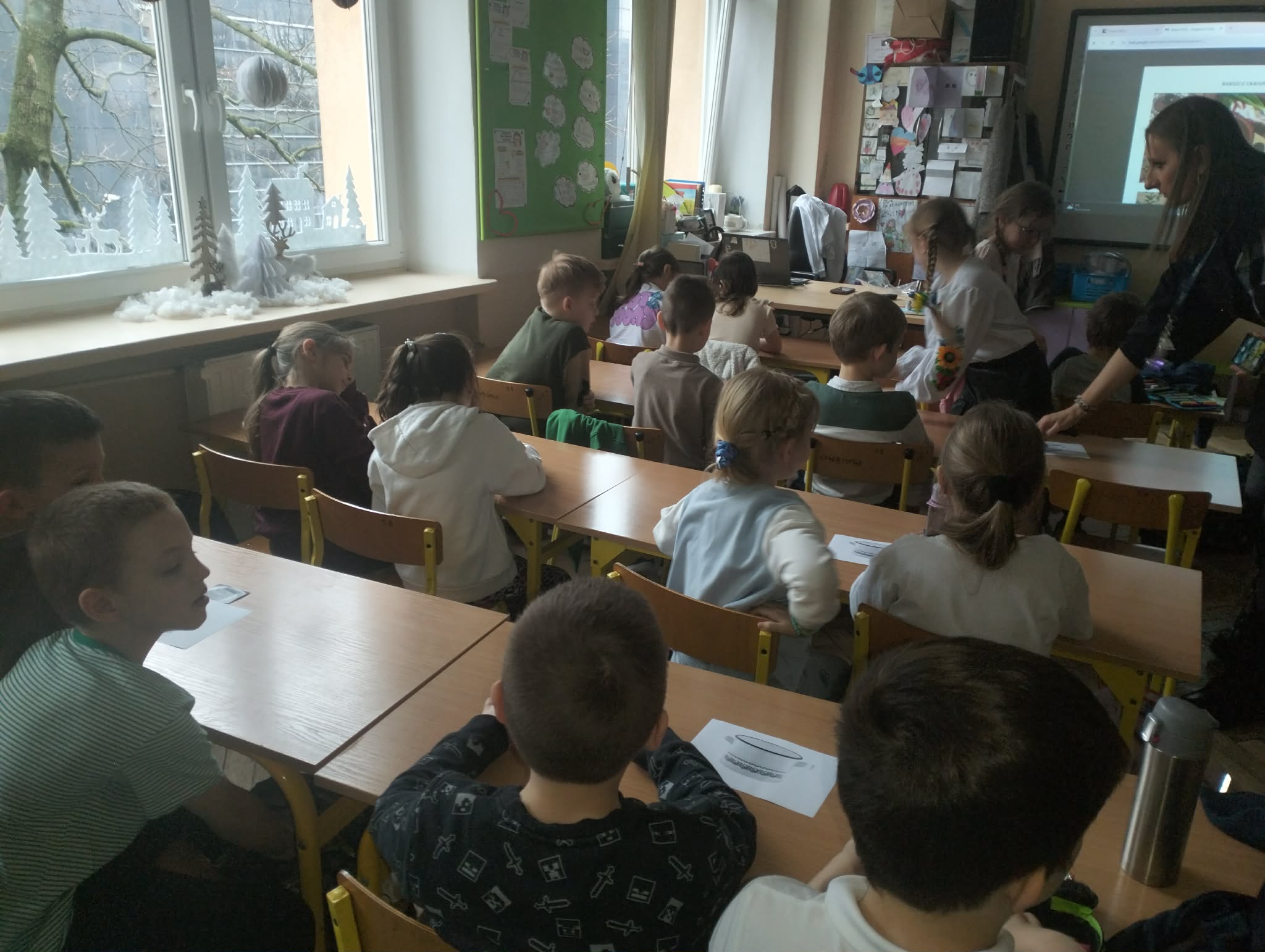 Ogromnym wydarzeniem były prowadzone warsztaty przez jedną z pań ze świetlicy, które przekazały nam ogromną wiedzę o Ukrainie: obejmującą informacje o jej geografii, kulturze, historii, gospodarce i społeczeństwie, tradycjach ludowych.