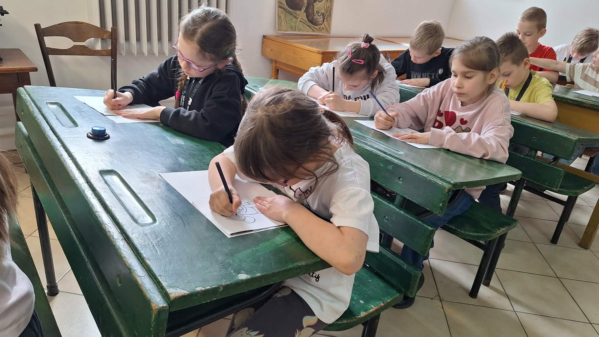 24 kwietnia uczniowie klasy 1a mieli niebywałą okazję przenieść się w czasie. Podczas wyjścia klasowego do pobliskiego Muzeum Oświaty Ziemi Łódzkiej, pierwszoklasiści doświadczyli, jak wyglądała szkoła dawniej oraz poznali różne ciekawostki związane z nauką i edukacją lata temu - z zabytkowymi ławkami, kałamarzem i piórem ze stalówką.