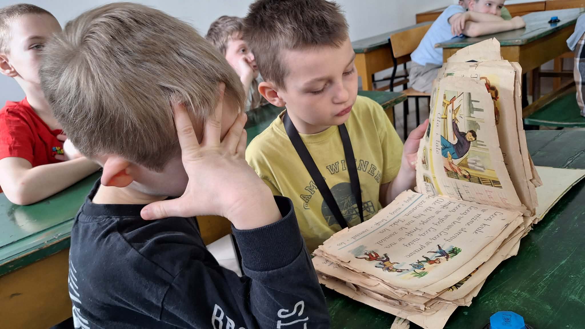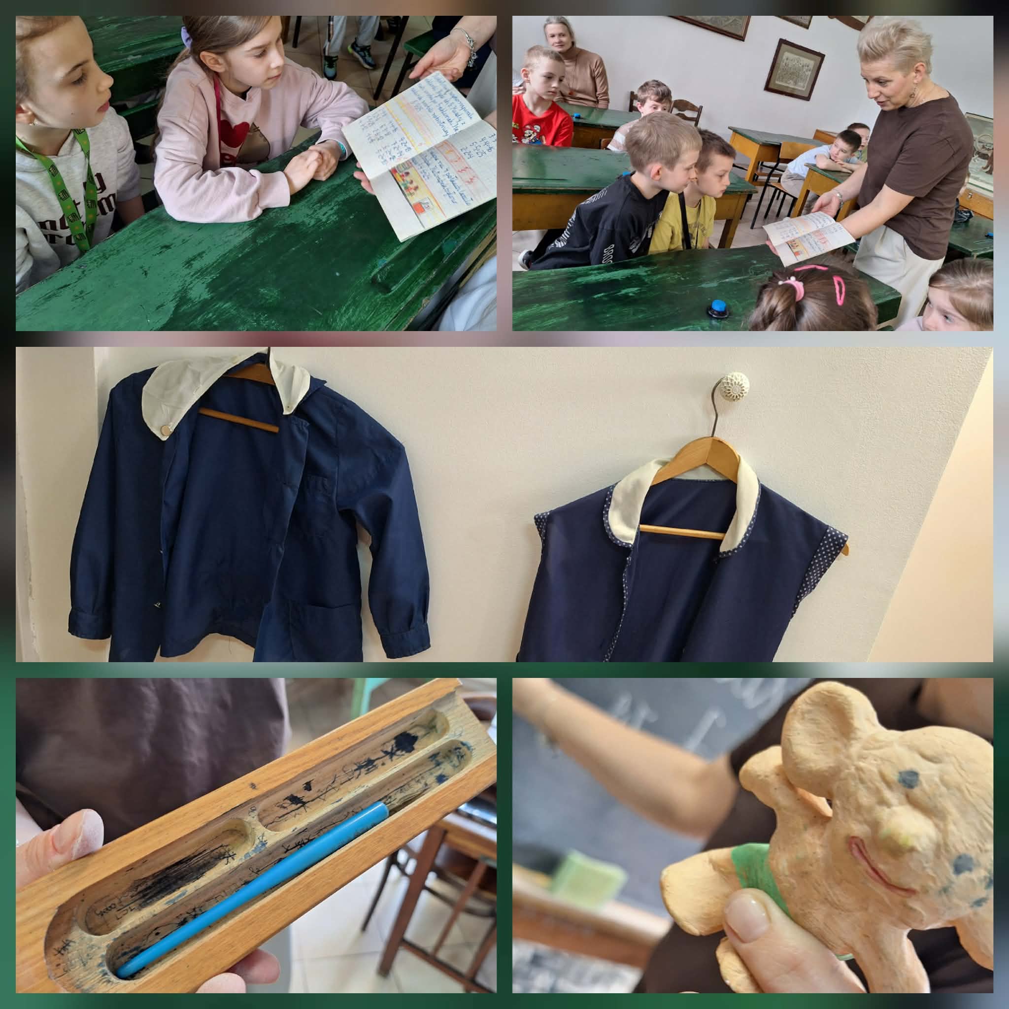 Atrakcją samą w sobie było to, że uczniowie mogli usiąść w budzących niemałe zaskoczenie ławkach, w miejscu urządzonym na styl dawnej sali lekcyjnej. Dzieci kaligrafowały, kalkowały, poznały historię dawnej edukacji, przybory i pomoce szkolne, dawne szkolne kary i dress code.