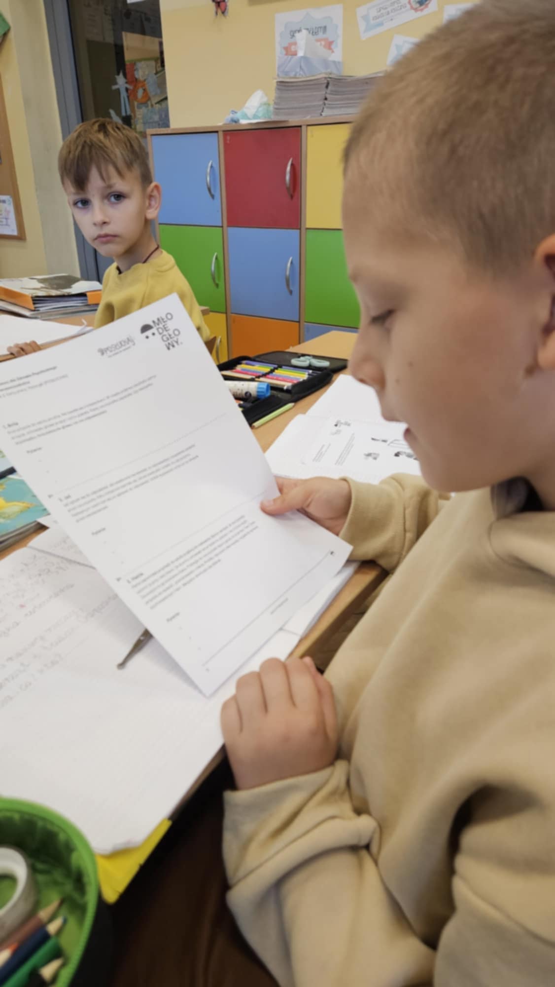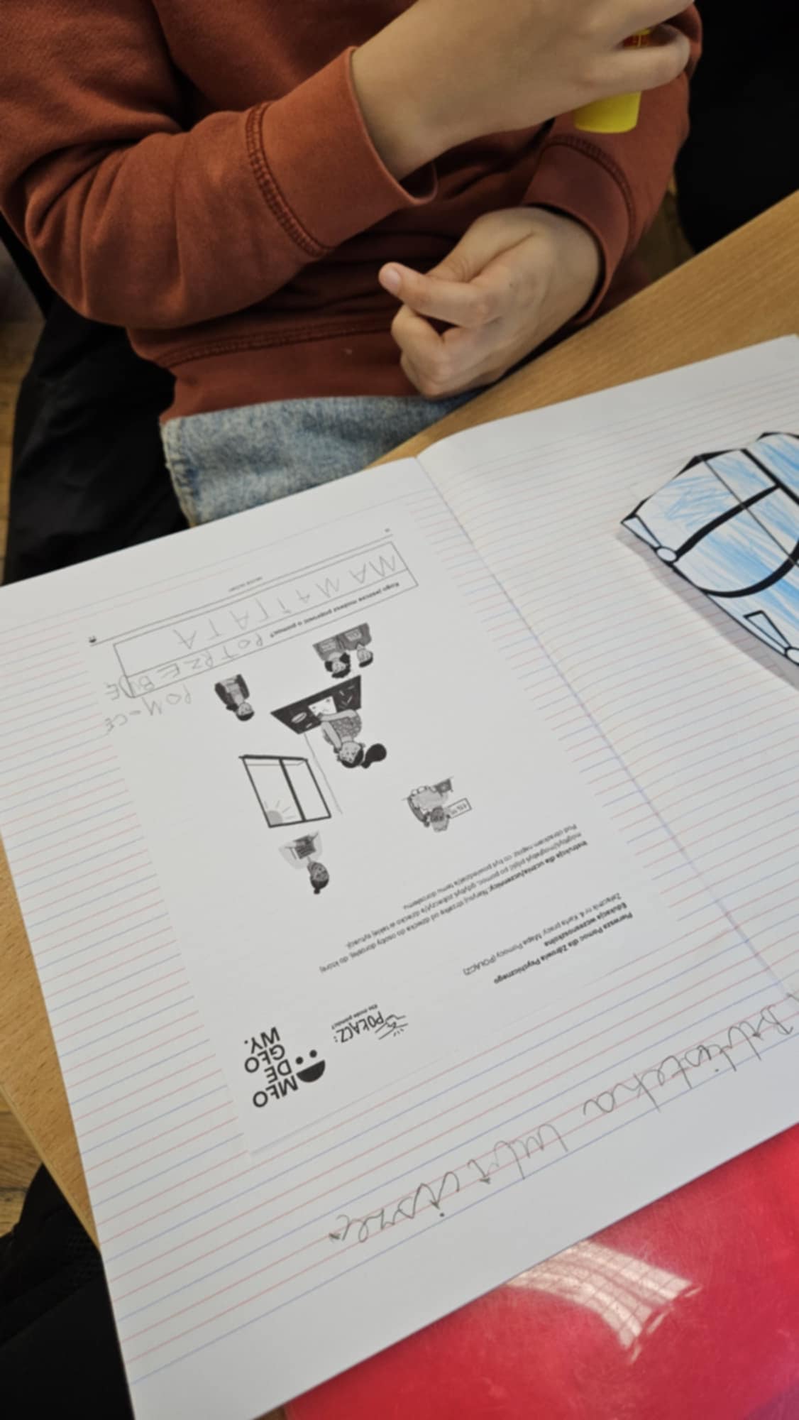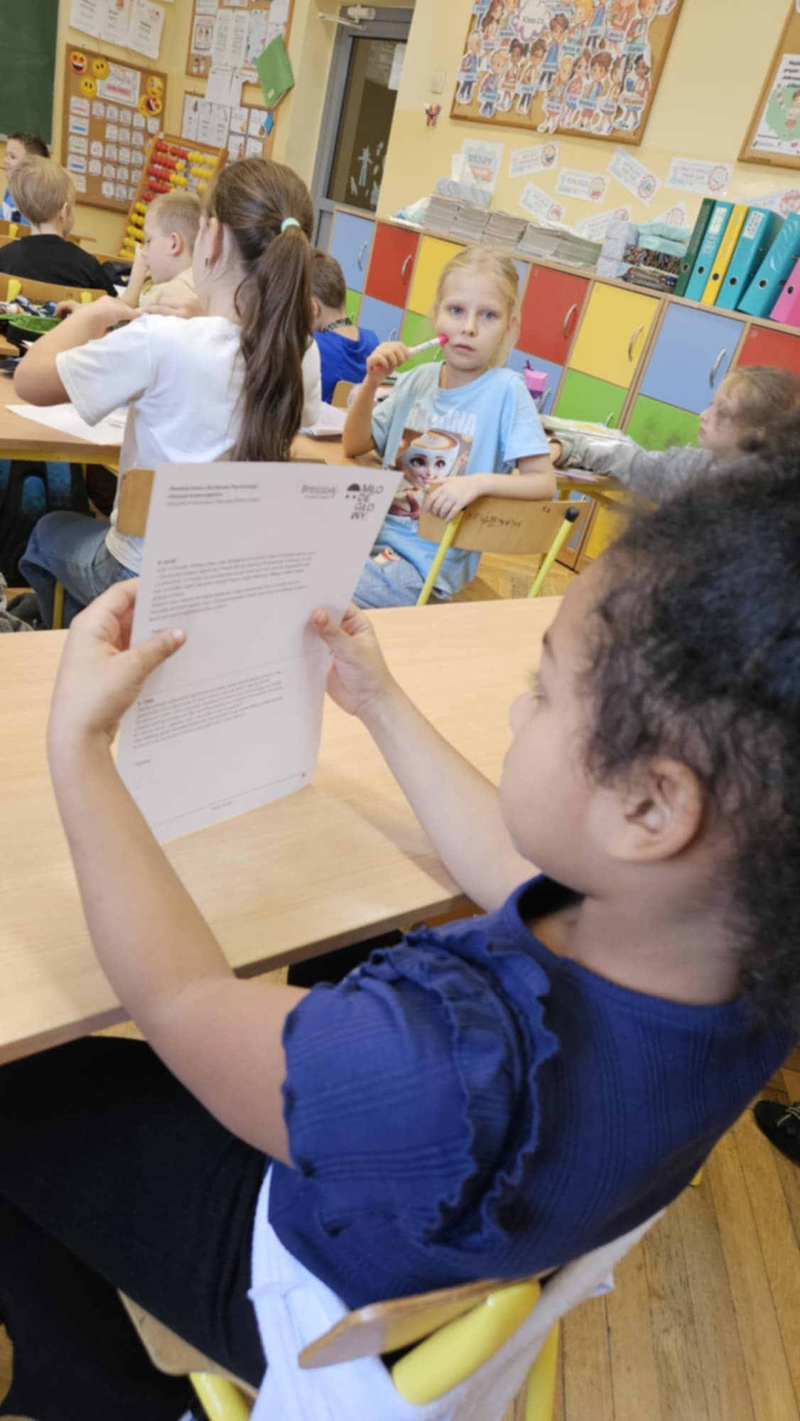 Uczniowie klasy 2b wzięli udział w zajęciach pod hasłem „Pierwsza pomoc dla zdrowia psychicznego”. Podczas lekcji dzieci rozwijały umiejętności rozpoznawania sygnałów kryzysu emocjonalnego oraz odpowiedniego reagowania, wiedząc, że zawsze warto zgłosić swoje obawy osobie dorosłej.