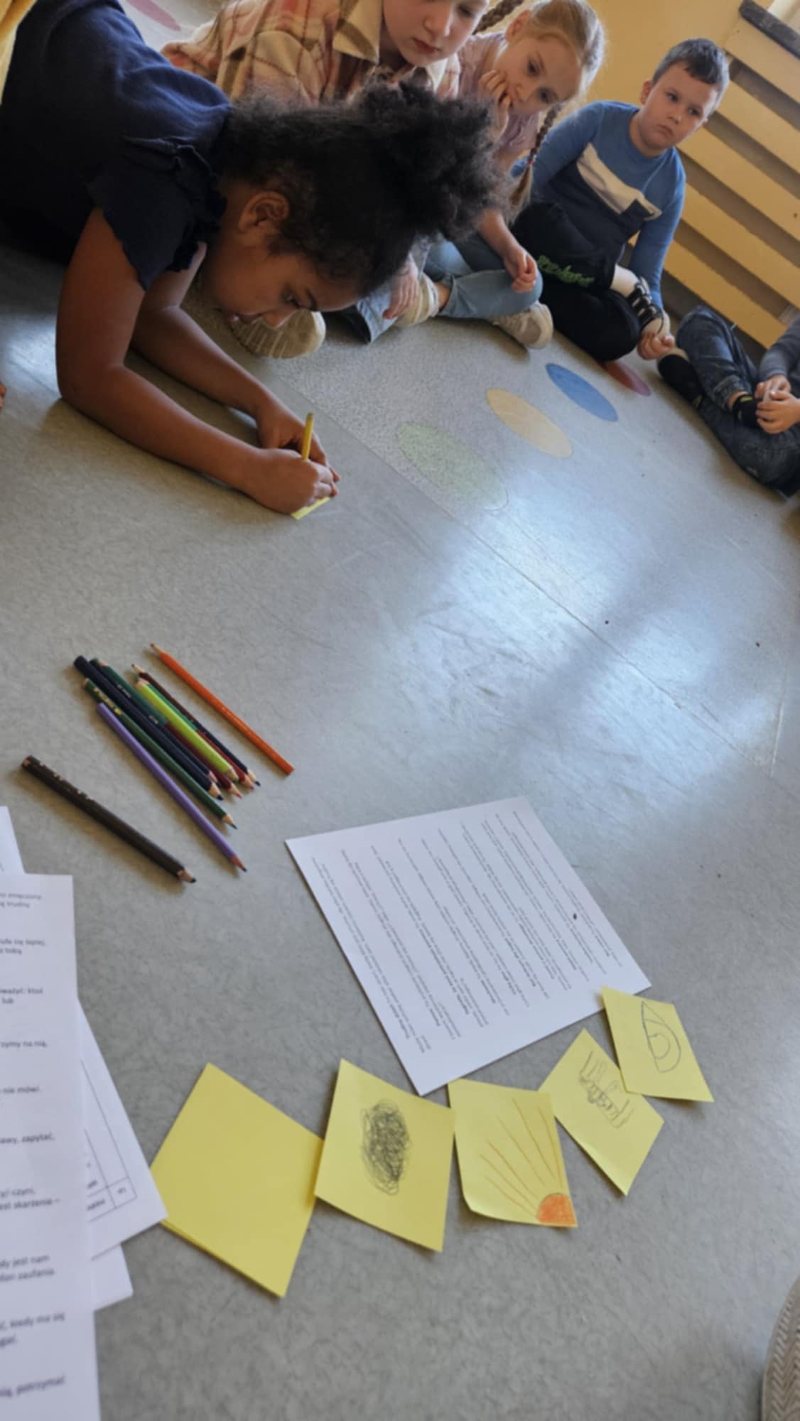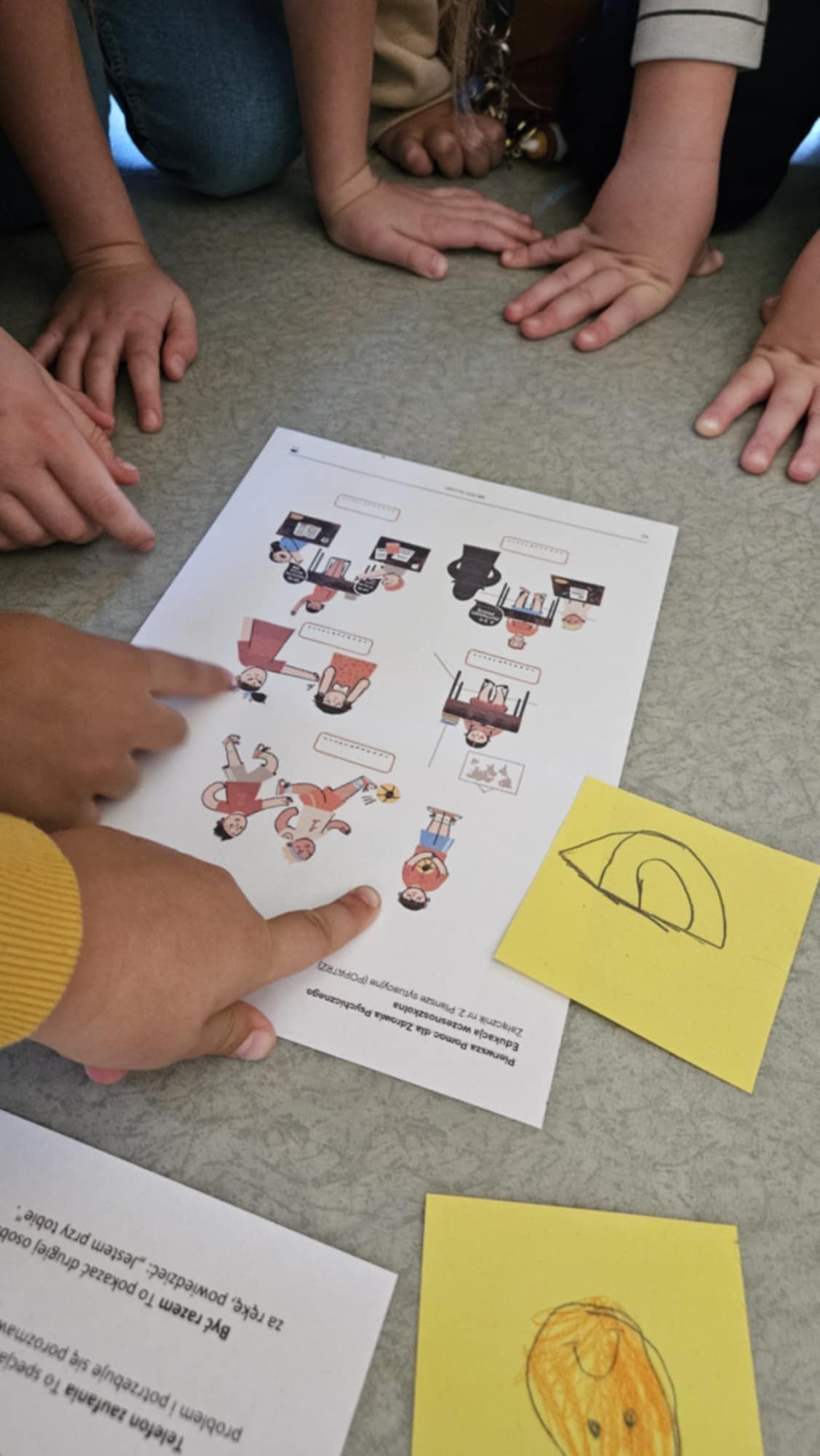Uczniowie chętnie rozmawiali o swoich emocjach, a podczas pracy w grupach analizowali krótkie historyjki, w których należało dostrzec problem i wspólnie zdecydować, jak najlepiej pomóc bohaterom.
