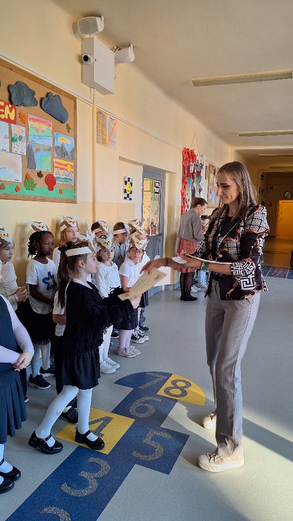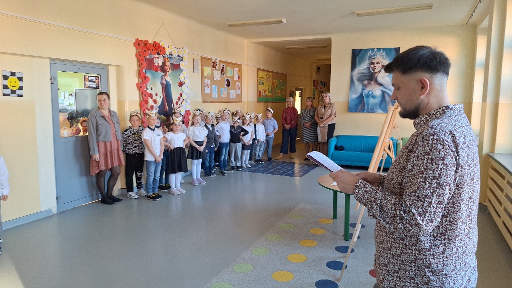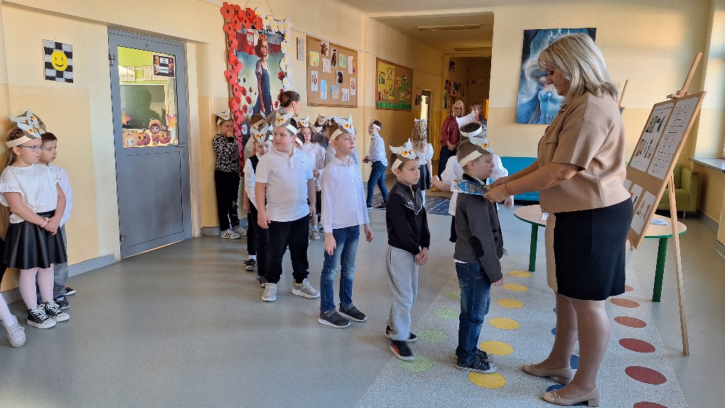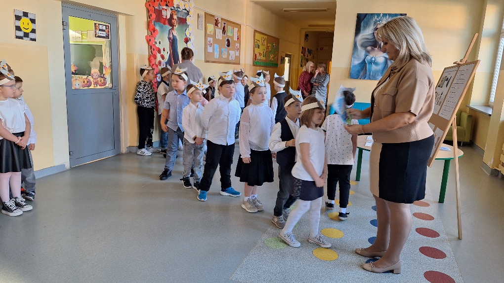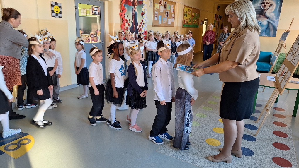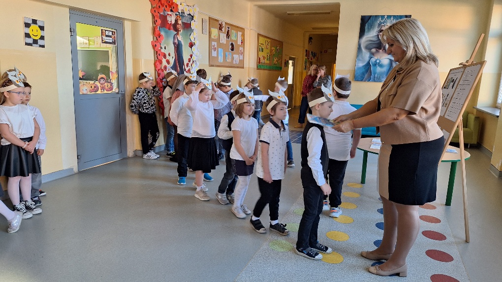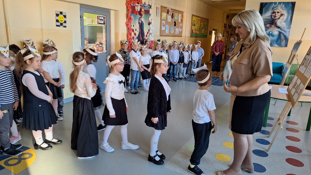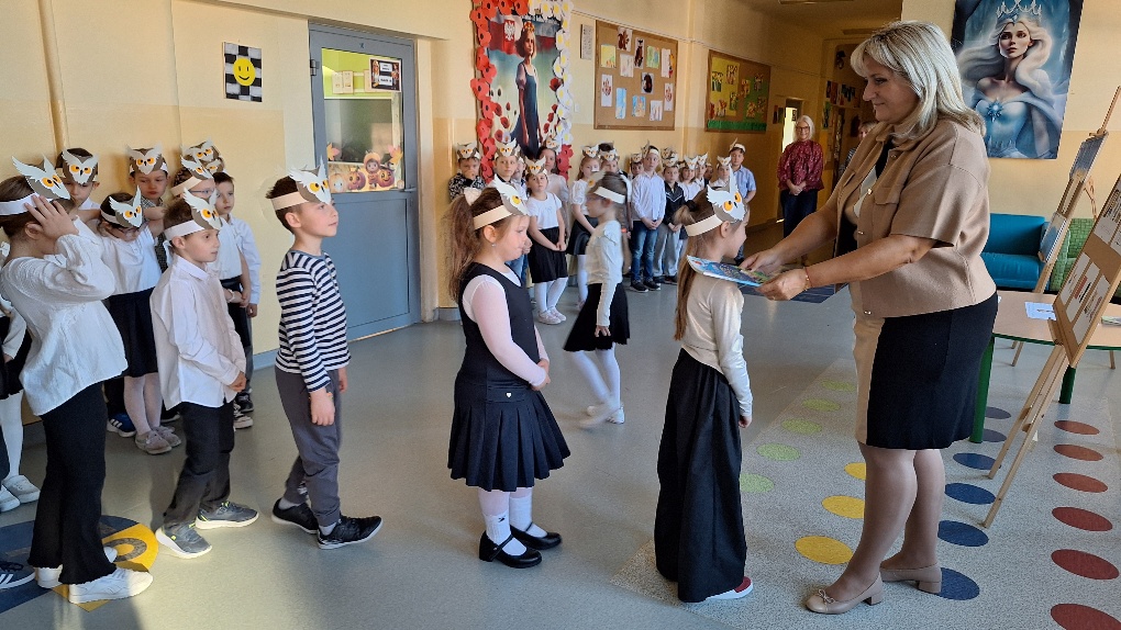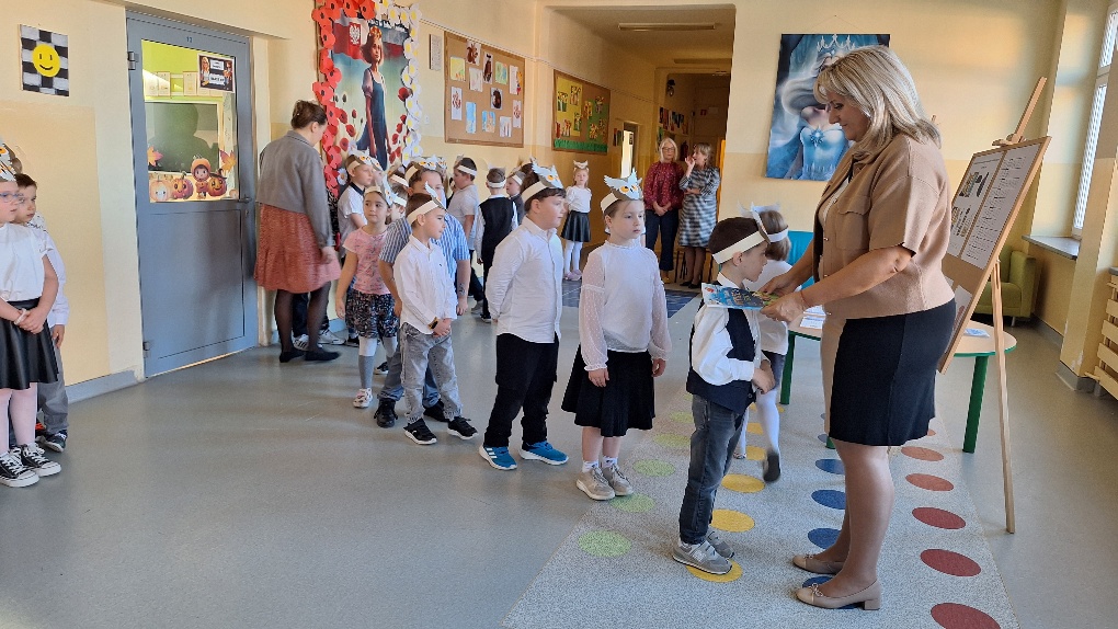 Pasowanie na czytelnika to oficjalne przyjęcie najmłodszych uczniów do grona czytelników biblioteki szkolnej. Głównym celem tej uroczystości jest zachęcenie do korzystania ze zbiorów bibliotecznych oraz ukazania biblioteki jako miejsca przyjaznego, bezpiecznego, którego z chęcią będą odwiedzać. Aby tradycji stało się zadość, 6 listopada 2025 r. uczniowie klas pierwszych zostali przyjęci w poczet czytelników naszej biblioteki. Zanim jednak złożyli uroczyste ślubowanie, wzięli udział w kilku teleturniejach, które przygotował dla nich nauczyciel biblioteki, p. Łukasz Gajewski. Następnie pierwszoklasiści złożyli uroczyste przyrzeczenie, po którym wszyscy zostali pasowani na czytelników - dokonała tego Pani Dyrektor Monika Siedmiogrodzka.
