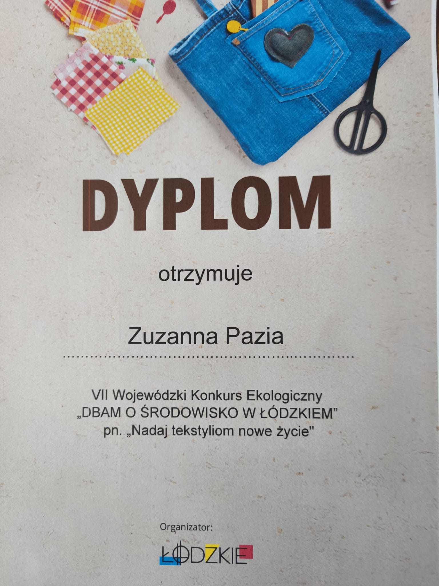 Piękne, pełne kreatywnych pomysłów prace plastyczne naszych uczniów wzięły udział w Wojewódzkim Konkursie Ekologicznym "Nadaj tekstyliom drugie życie" a ich autorzy otrzymali nagrody rzeczowe i pamiątkowe dyplomy.