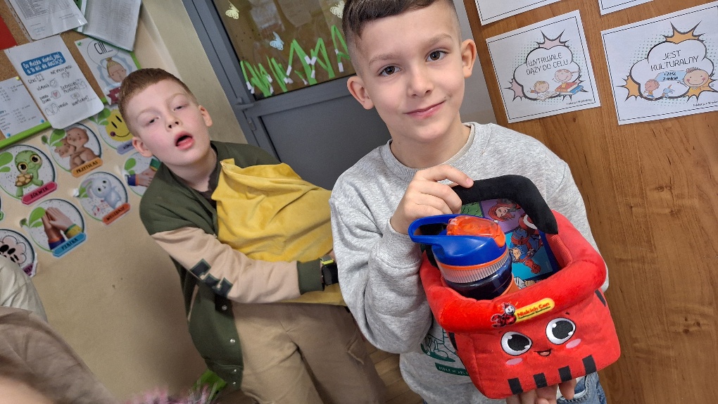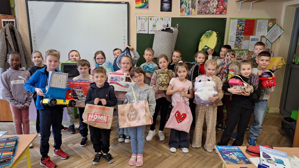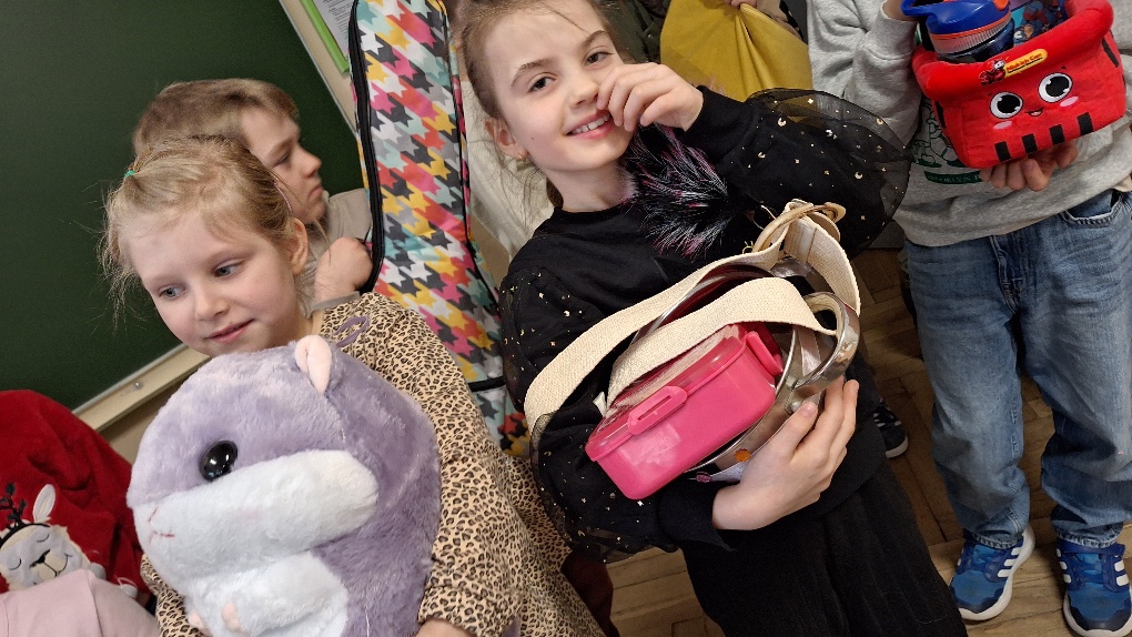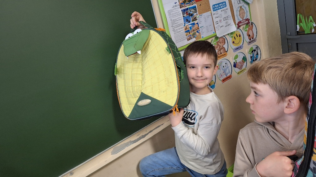 Biorąc w niej aktywny udział, uczniowie klasy 1a zrealizowali kolejne z zadań Ogólnopolskiego Projektu Edukacyjnego "Postaw na wartości". Pierwszoklasiści, rezygnując z tradycyjnych plecaków, mieli okazję posłużyć się swoją wyobraźnią i zaprezentować nietypowe sposoby przenoszenia podręczników i zeszytów. Dzieci udowodniły, że kreatywność nie zna granic.