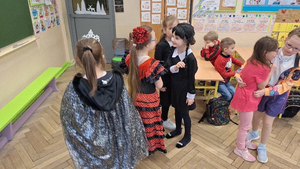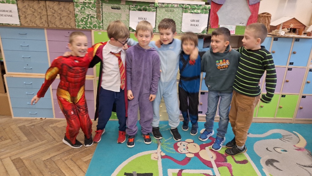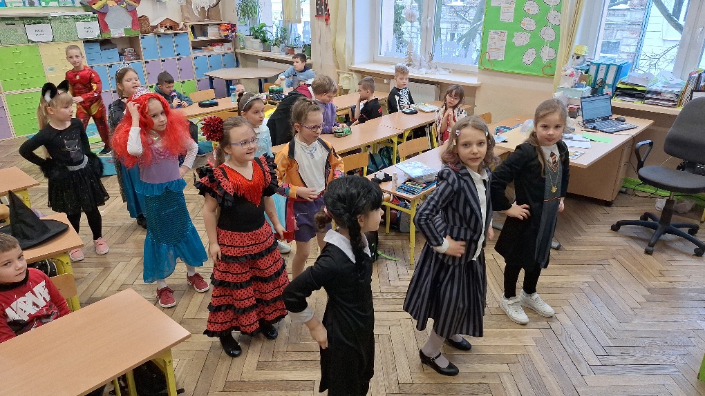 17 lutego karnawał zawitał do klasy 1a. Od samego rana w sali lekcyjnej nr 8 można było zobaczyć kolorowe postacie. Tego dnia uczniowie zamienili się w najróżniejszych bohaterów z ulubionych bajek, gier i filmów. Można było podziwiać naprawdę wiele ciekawych charakteryzacji. Pierwszoklasiści brali udział w zabawach integrujących zespół klasowy. Tańcom - hulańcom nie było końca. Wspólna zabawa przysporzyła wszystkim wiele radości, ale przecież taki też był cel:)