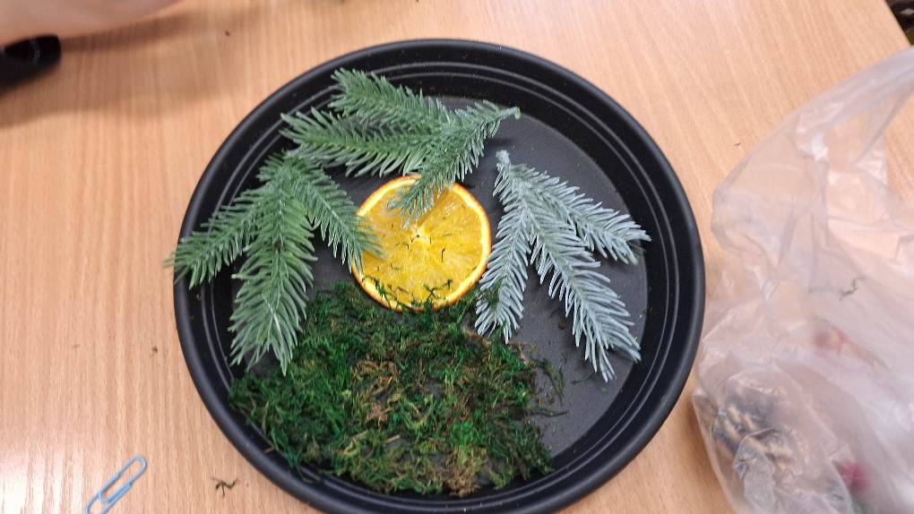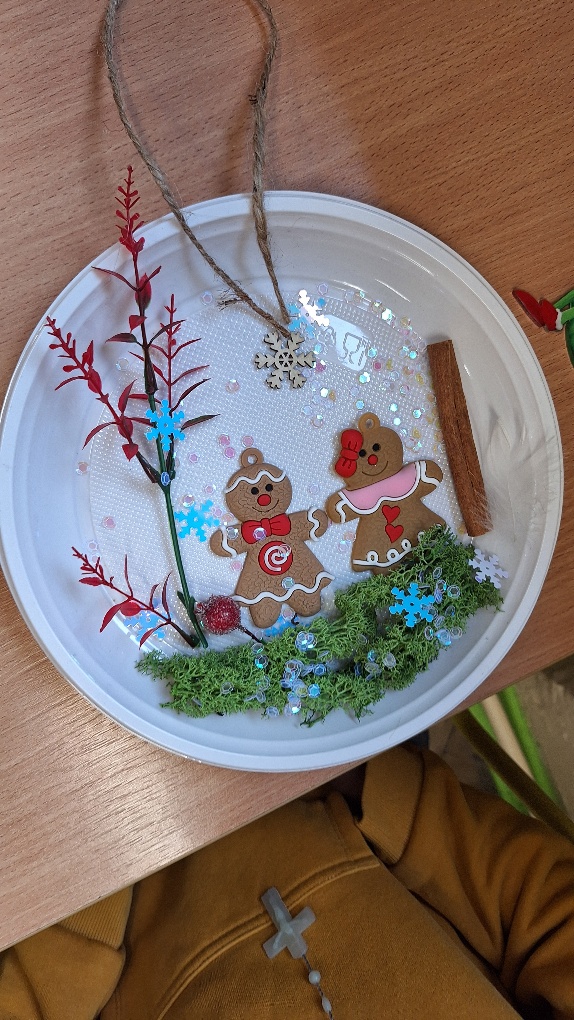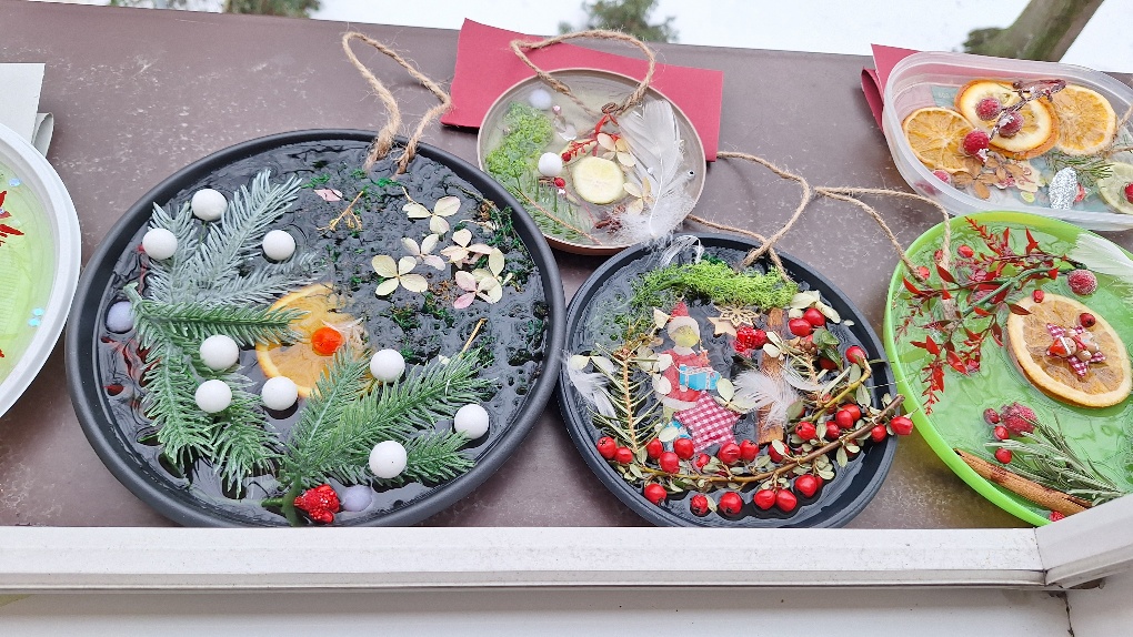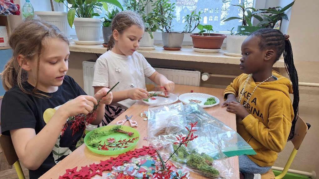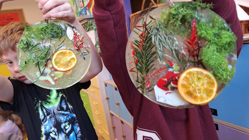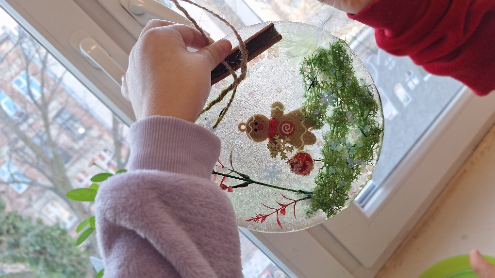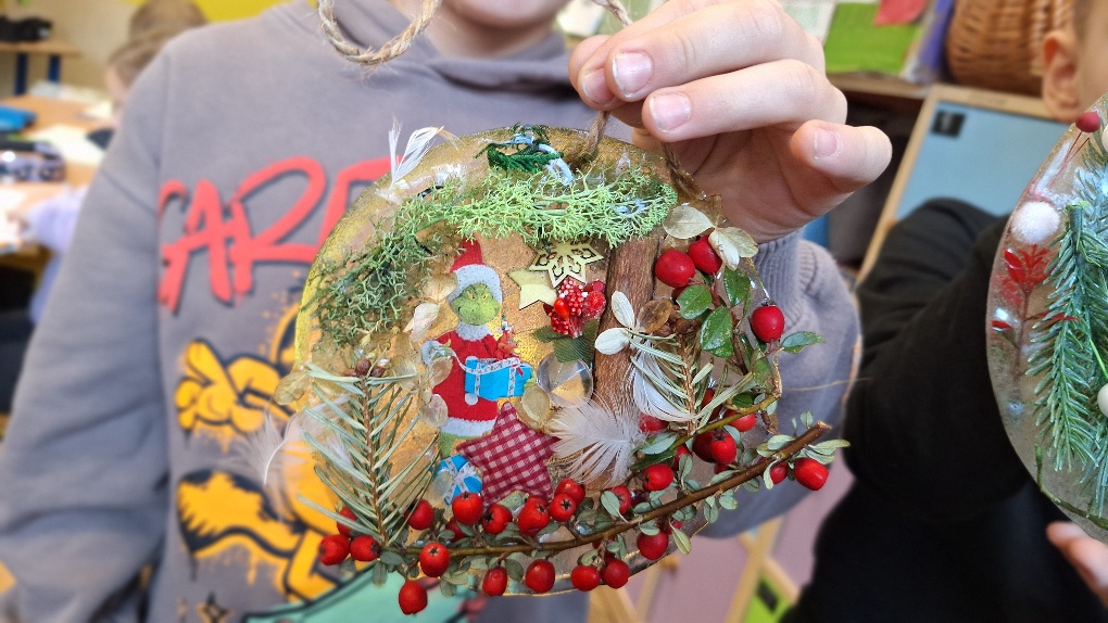 W ostatnim czasie pierwszoklasiści stworzyli lodowe witraże, które nawiązują do land artu (land art - sztuka ziemi; obszarem działania jest tu szeroko pojęta przestrzeń ziemi, środowiska naturalnego). Tuż przed weekendem dzieci przygotowały solidny materiał pod wspomniane witraże, a wykorzystali do tego celu m.in.: kwiaty, liście, gałązki, małe szyszki, plasterki owoców, liść laurowy i goździki, laski cynamonu, gwiazdki anyżu i inne części roślin oraz okrągły plastikowy pojemnik, wodę, sznurek, nożyczki i…i oczywiście mróz!